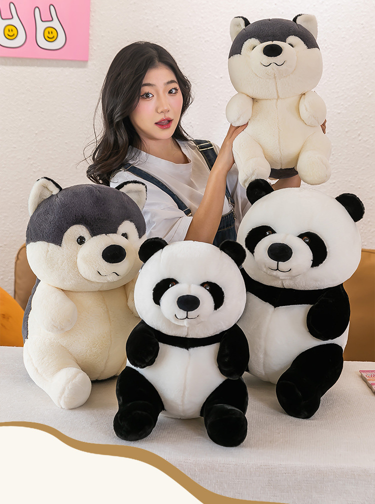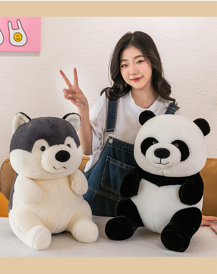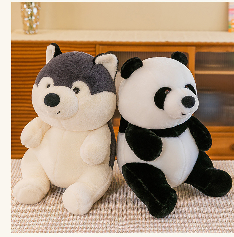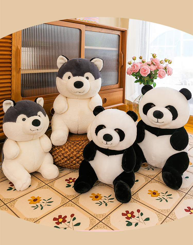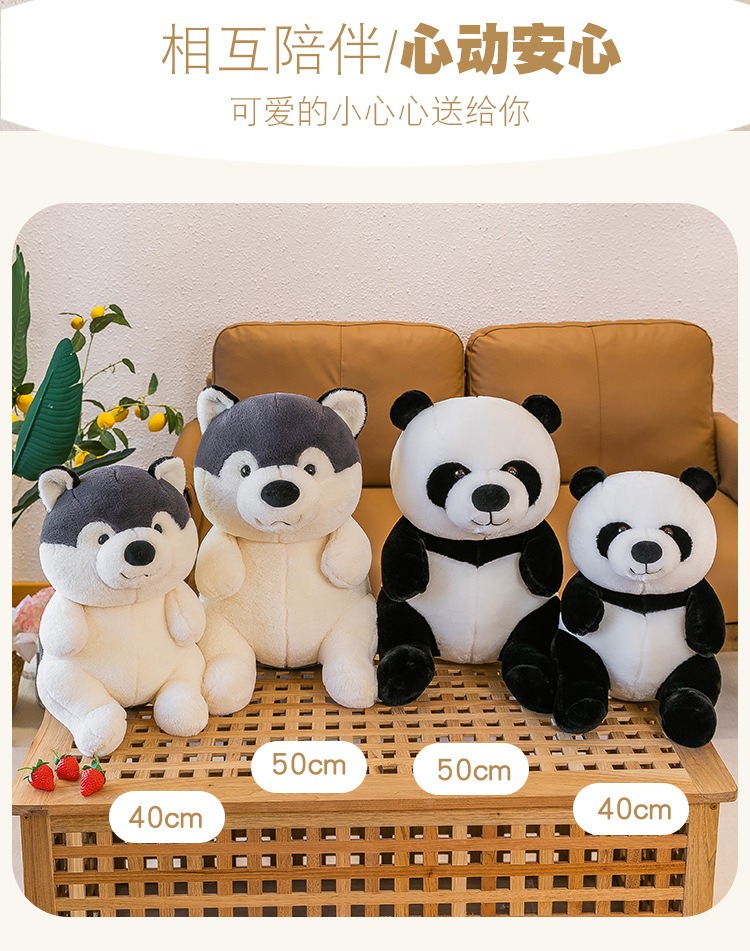 国宝仿真熊猫公仔毛绒玩具哈士奇狗狗玩偶儿童动物布娃娃批发代发
