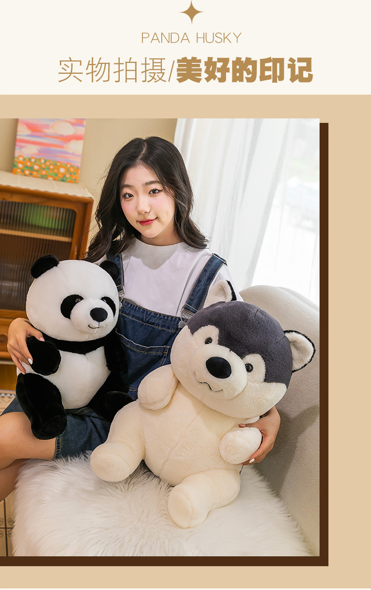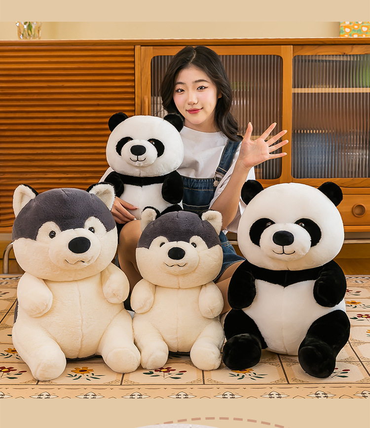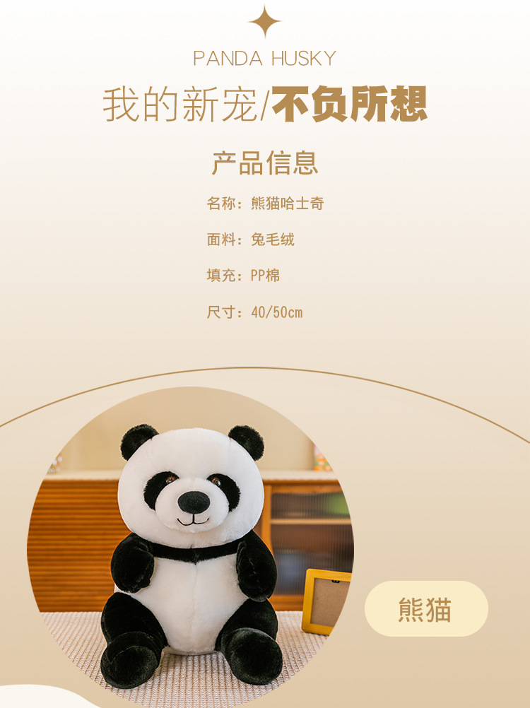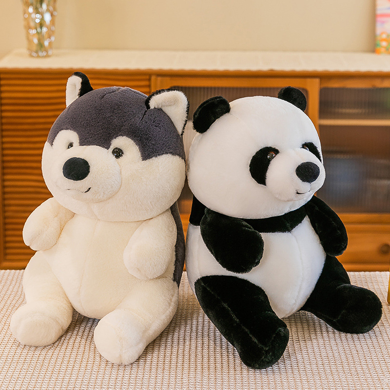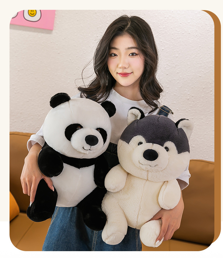 国宝仿真熊猫公仔毛绒玩具哈士奇狗狗玩偶儿童动物布娃娃批发代发