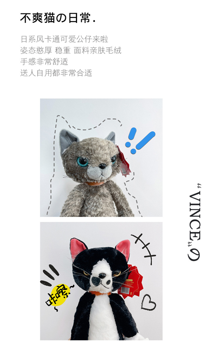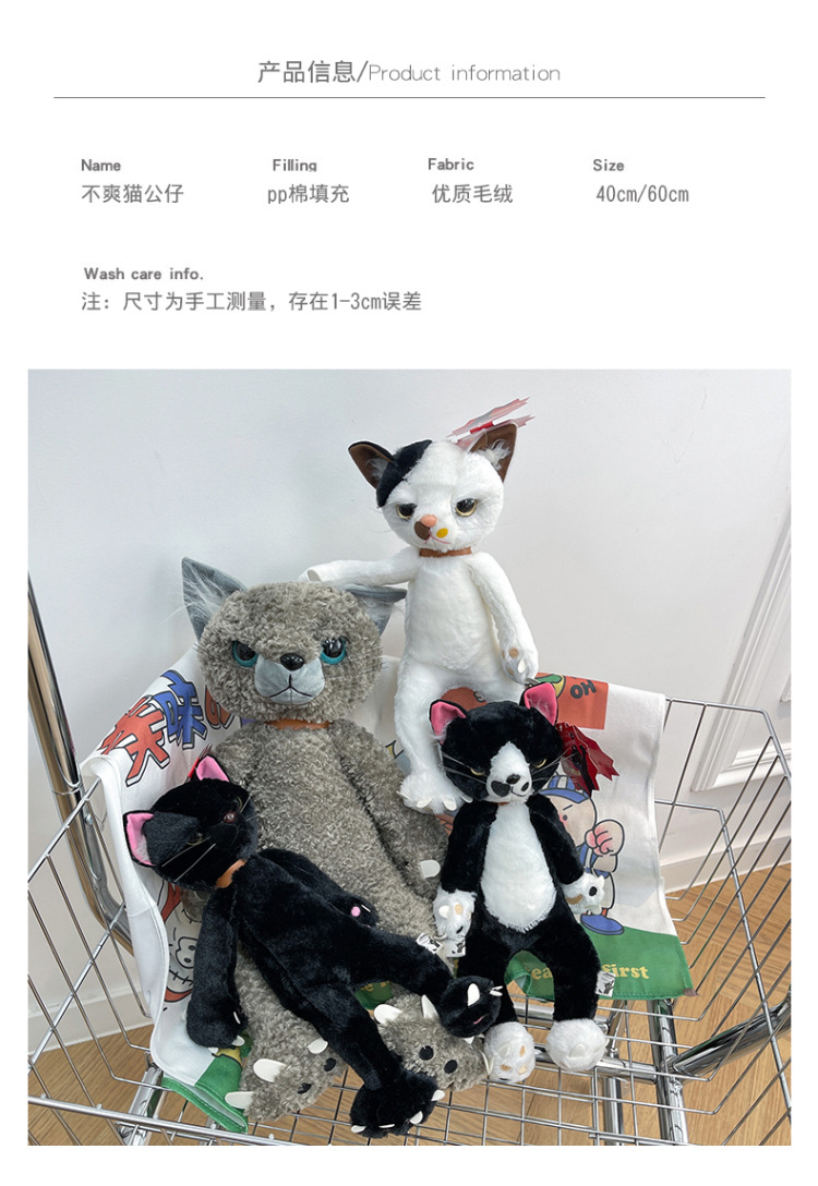 跨境日系搞怪不爽猫毛绒玩具外贸小猫咪公仔布娃娃批发儿童玩偶