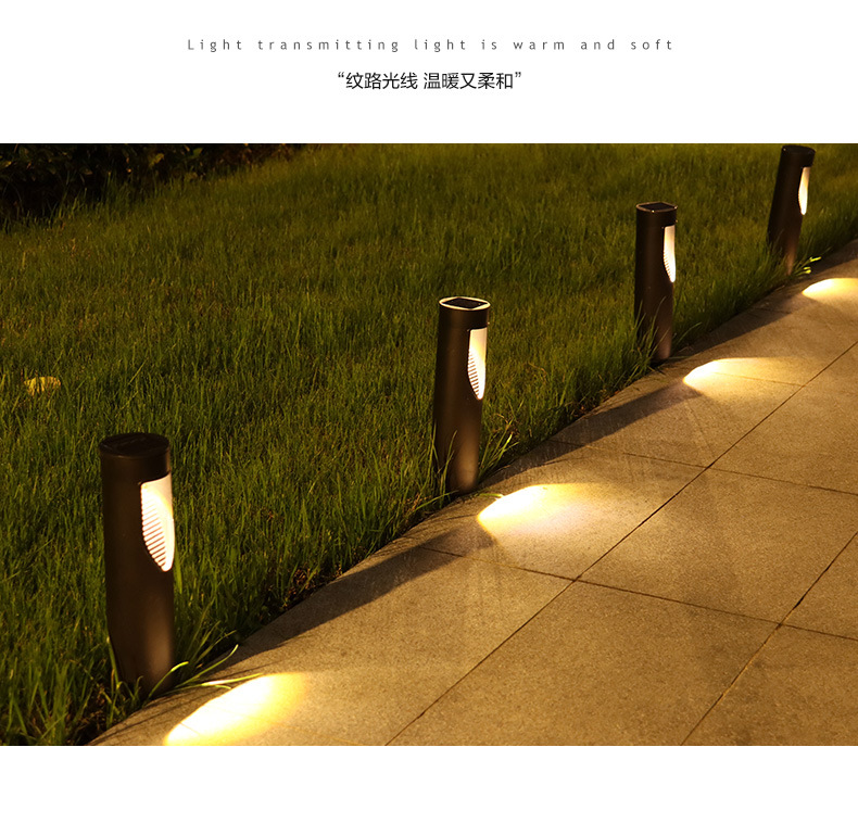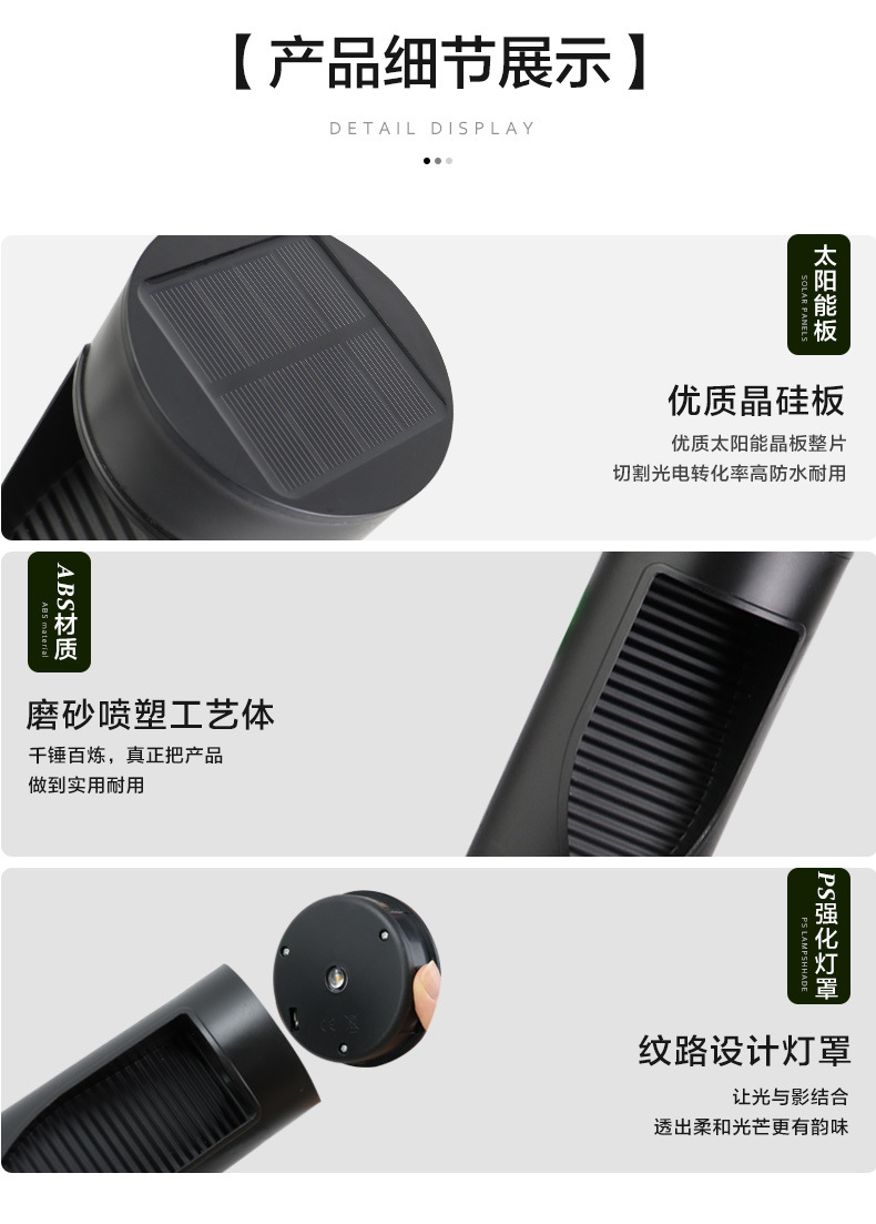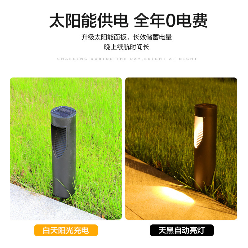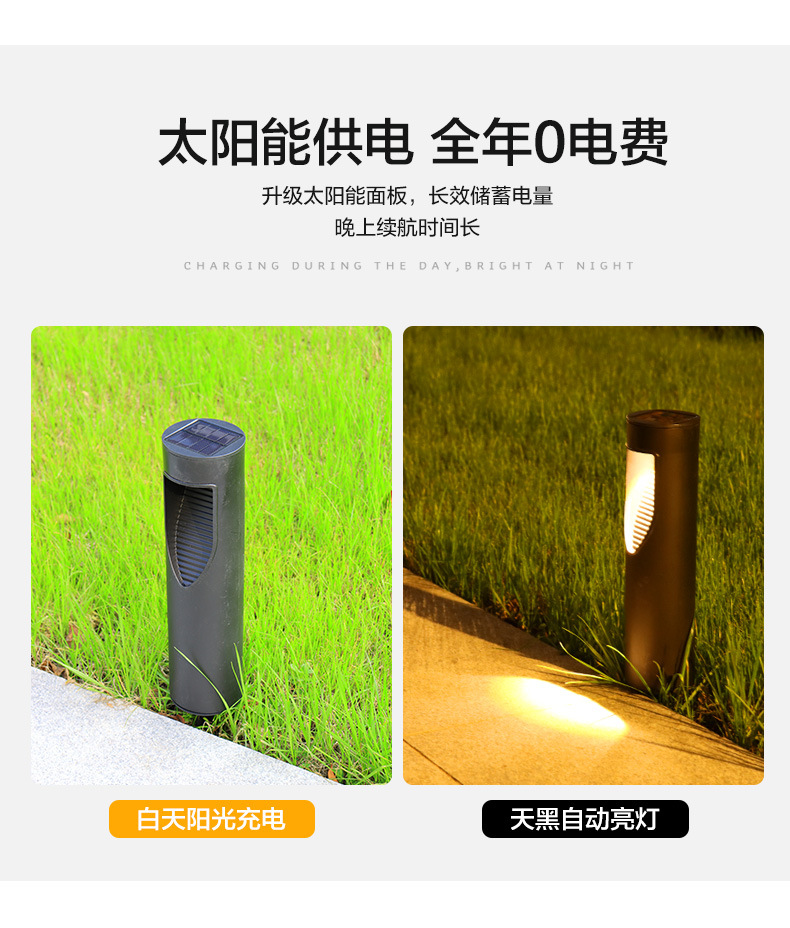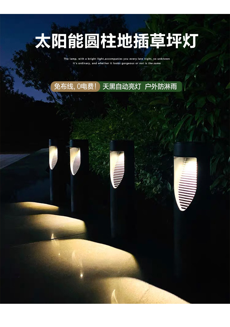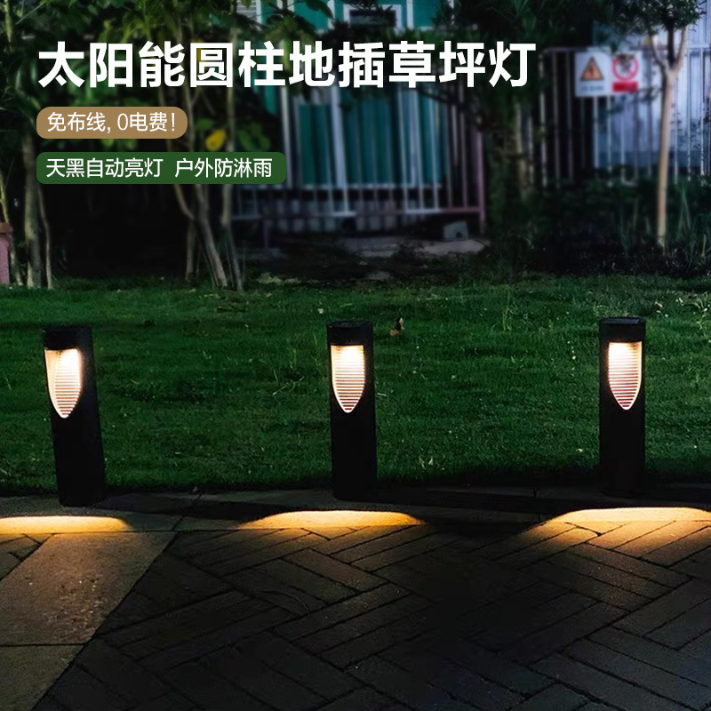 新款户外太阳能圆柱草坪灯led庭院光影道路灯家用公园氛围灯防水