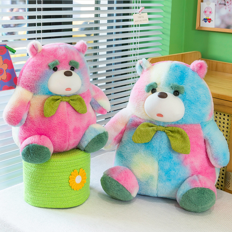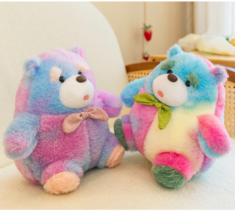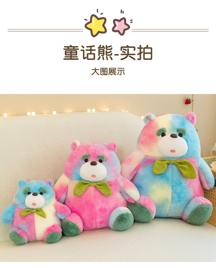 跨境新款炫彩草莓熊公仔毛绒玩具批发可爱泰迪熊儿童布娃娃玩偶