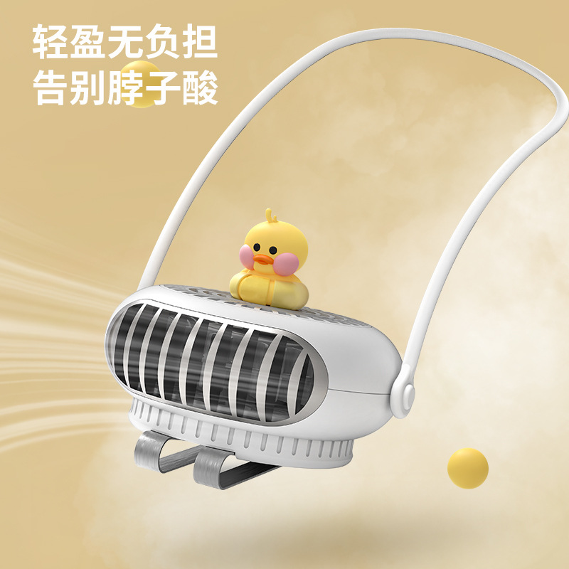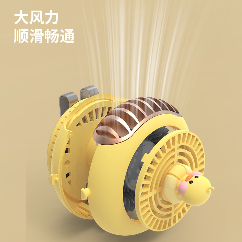 脖子风扇 小黄鸭风扇 驱蚊七彩温馨灯光夹子风扇户外安全婴儿风扇