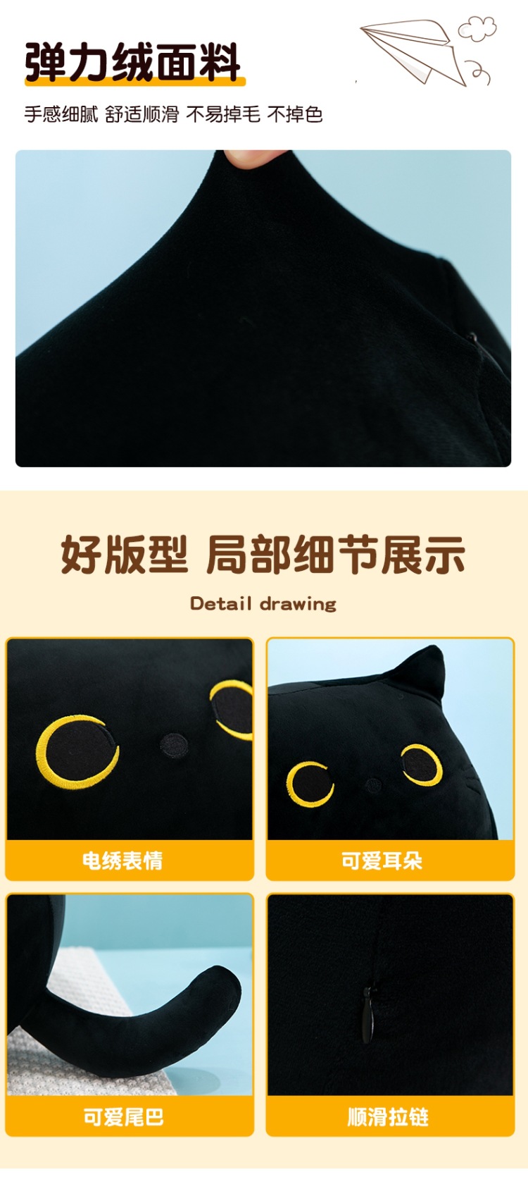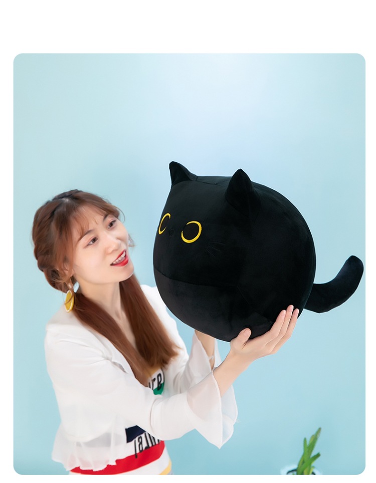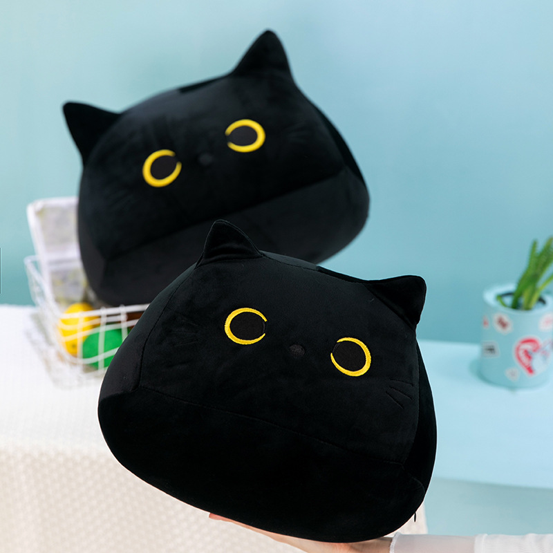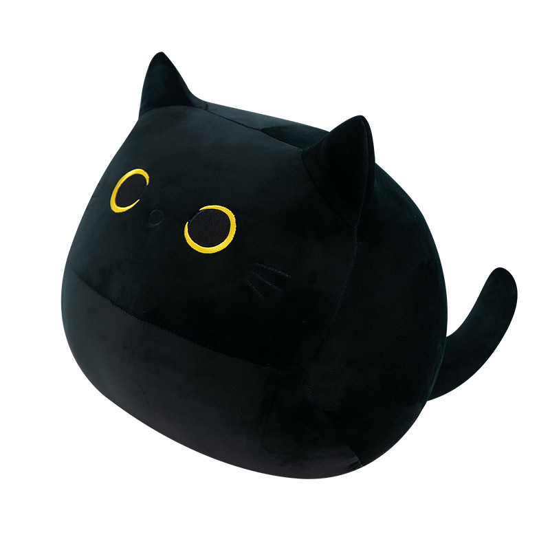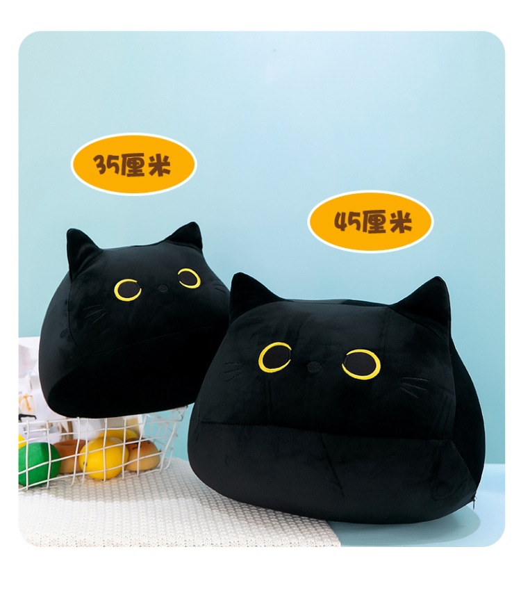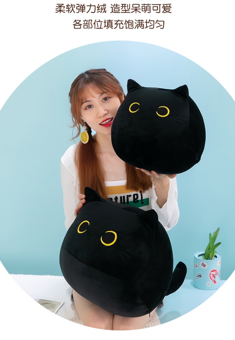 跨境批发小黑猫抱枕毛绒玩具公仔日系猫咪玩偶靠垫外贸卡通布娃娃