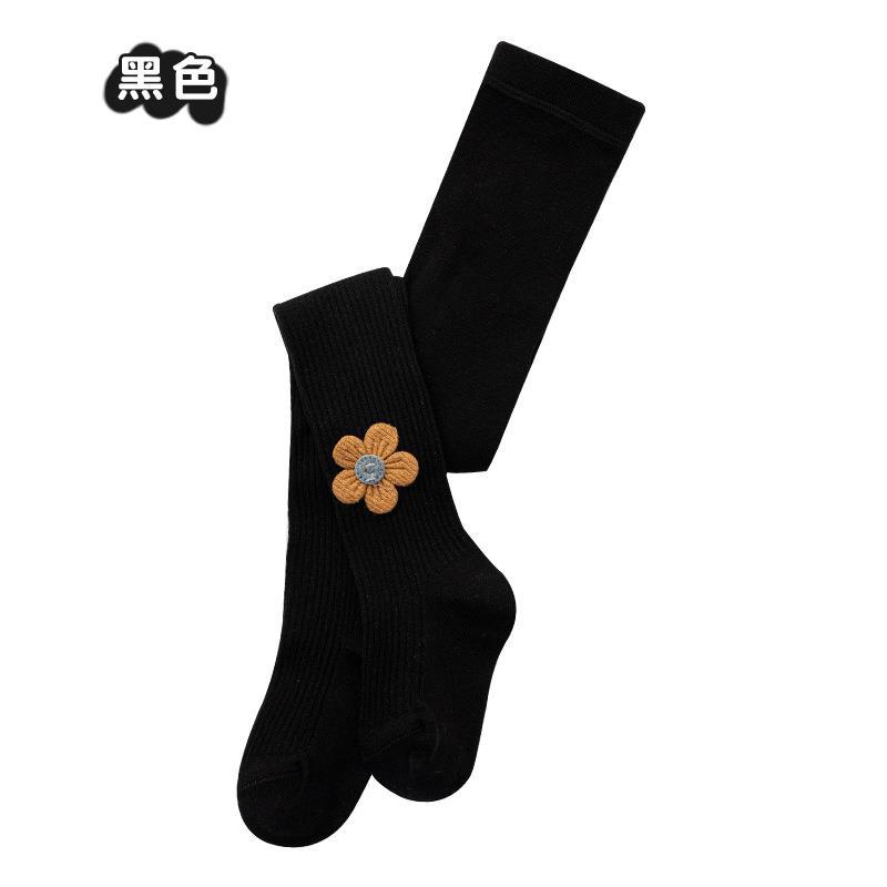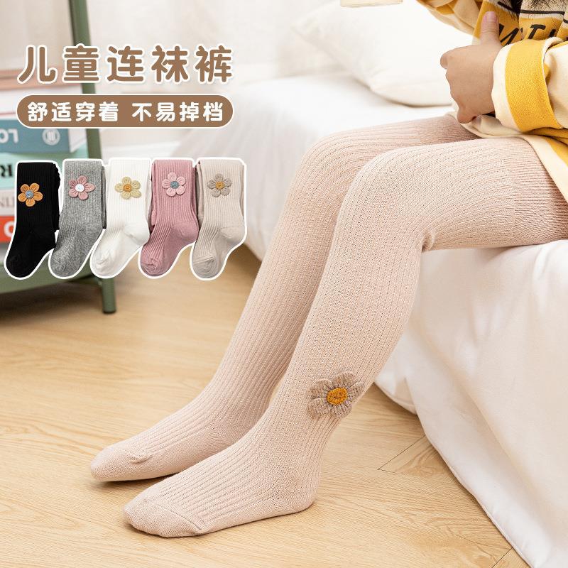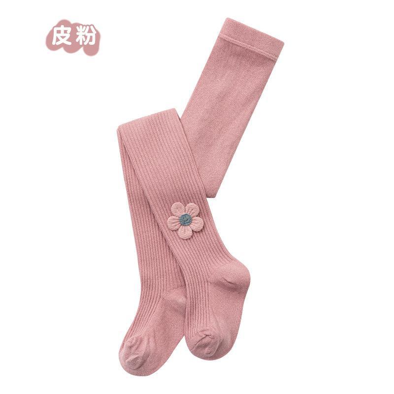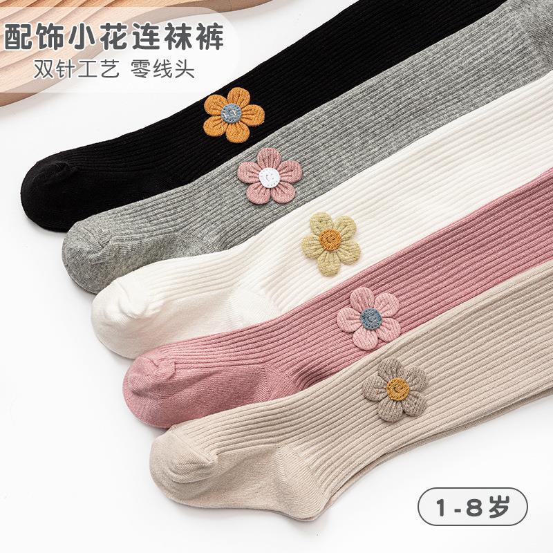 23春秋双针儿童连裤袜小花配饰宝宝打底裤袜婴儿连体袜女童打底裤