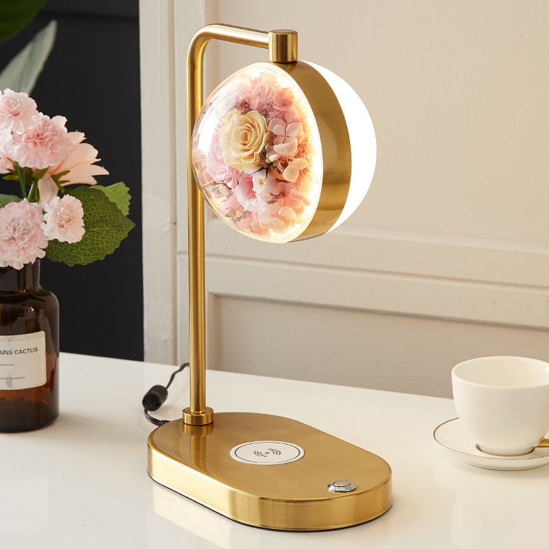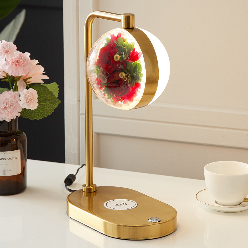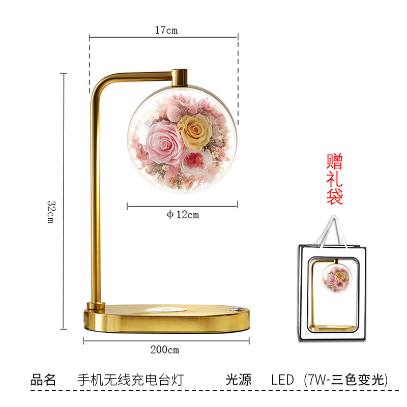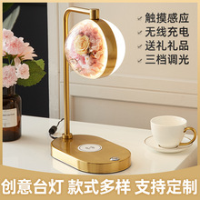外贸专供手机无线充电台灯 永生花床头灯触摸感应台灯送礼DIY摆放