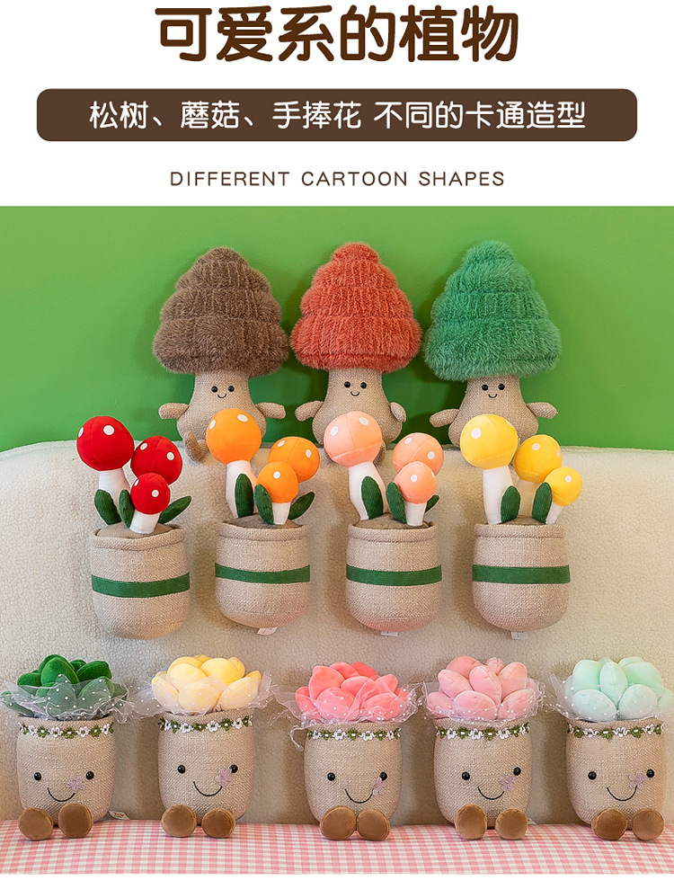 仿真花盆植物多肉毛绒玩具家居绿植摆件郁金香盆栽玩偶抓机娃娃