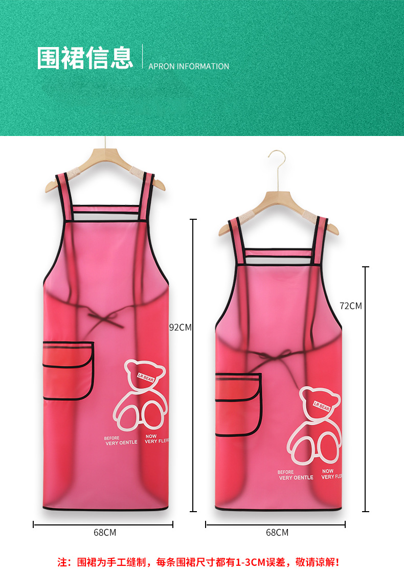 透明围裙防油防水厨房家做饭餐饮专用网红定 制logo印字工作服女