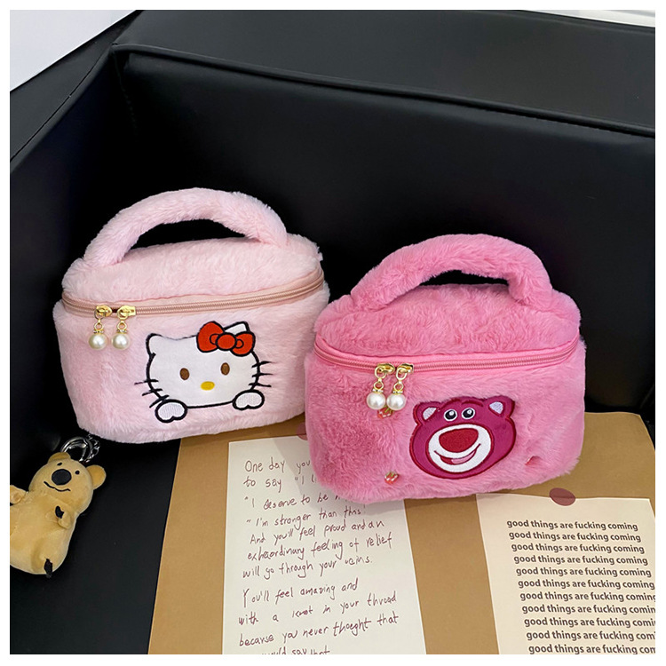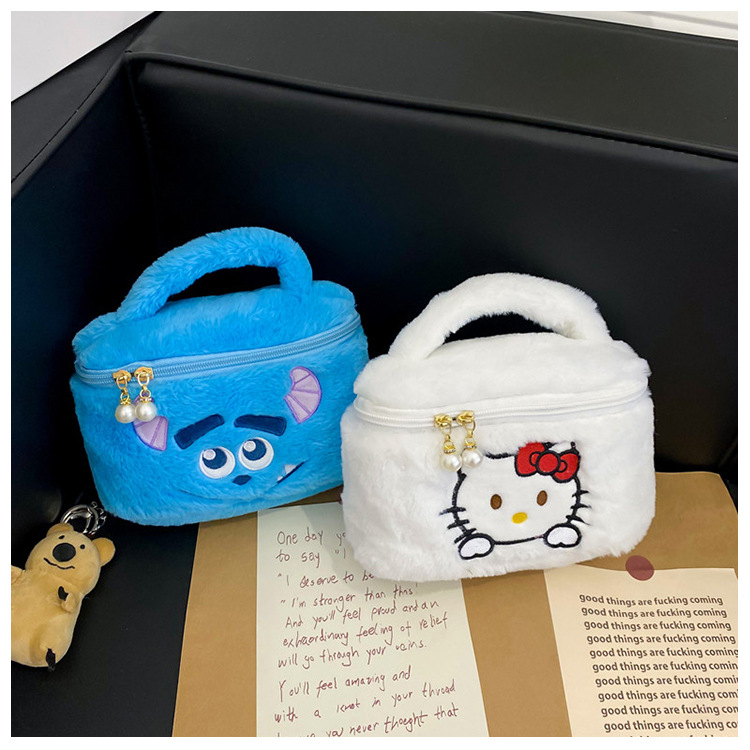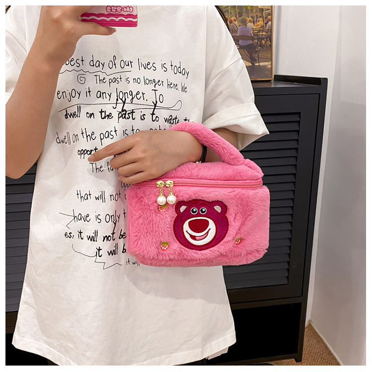 跨境毛绒玩具包化妆包毛绒卡通手提便携百搭收纳洗漱包厂家批发