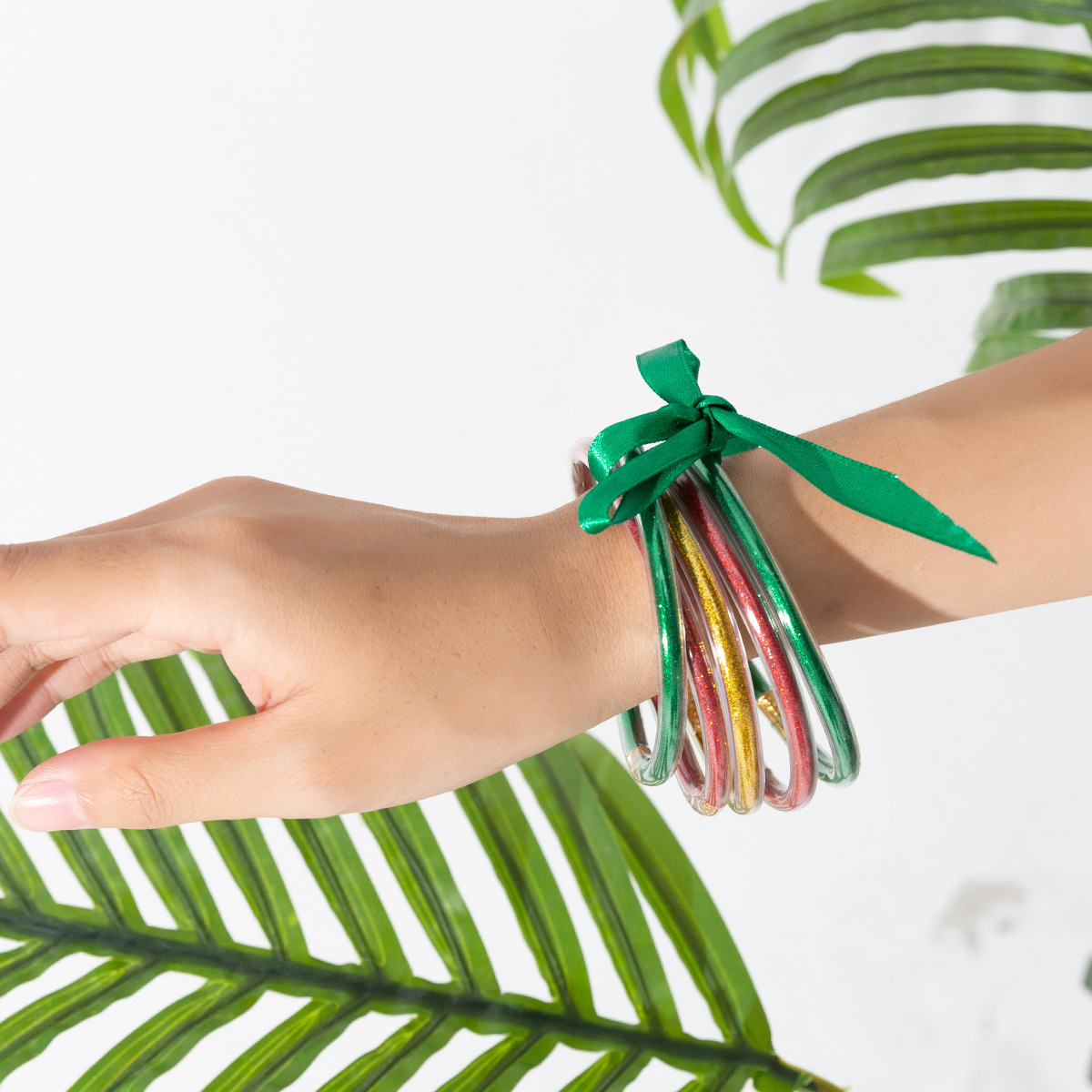 五层金粉手环闪粉米珠混色万圣节圣诞节款钥匙扣丝带绑手镯