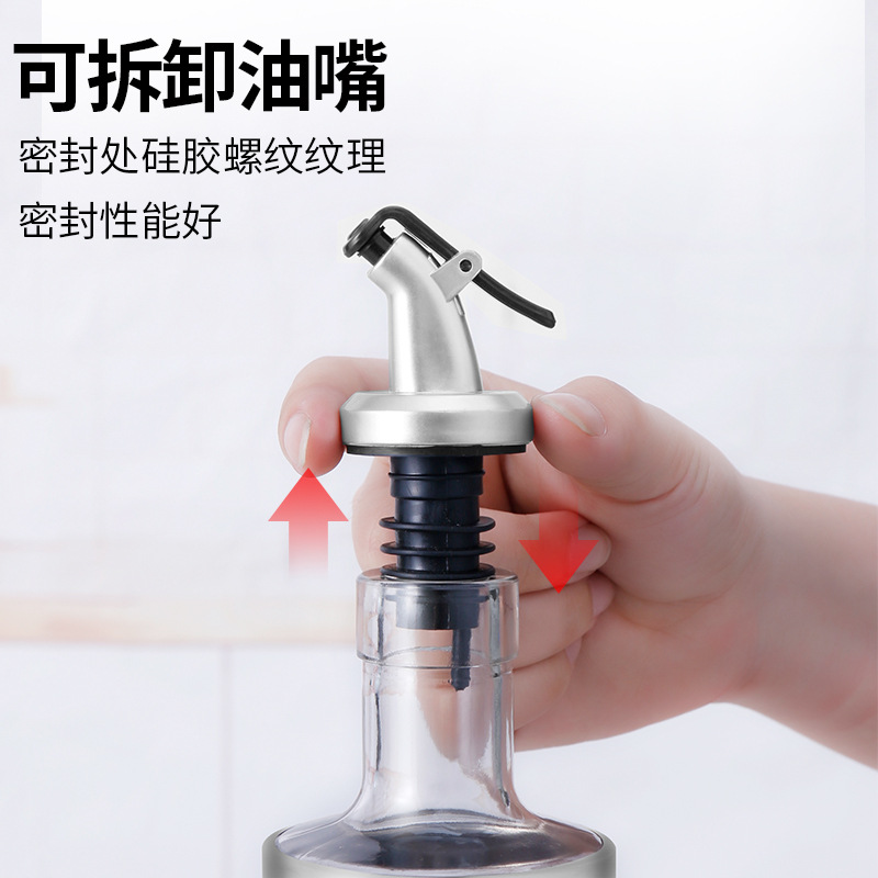玻璃油壶不锈钢套皮油壶不挂油按压嘴酱油瓶醋瓶酒瓶厨房调味用品
