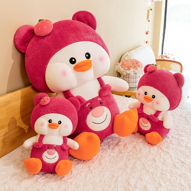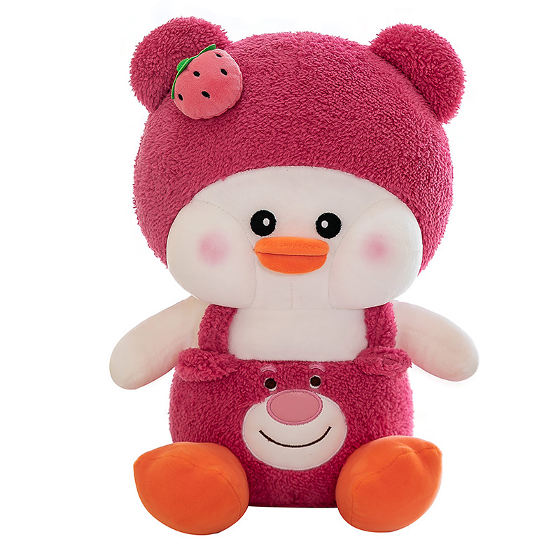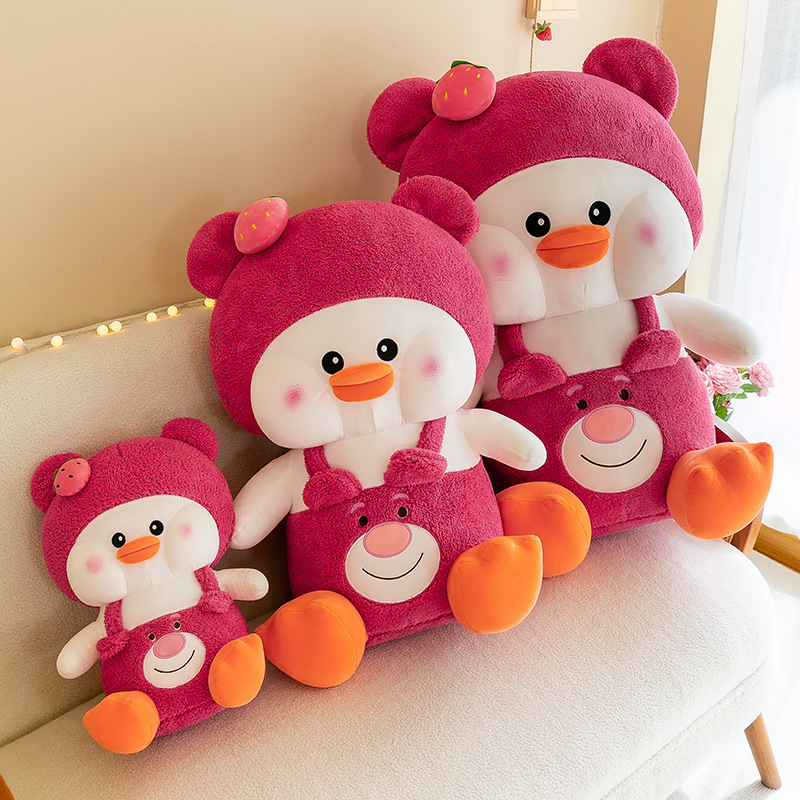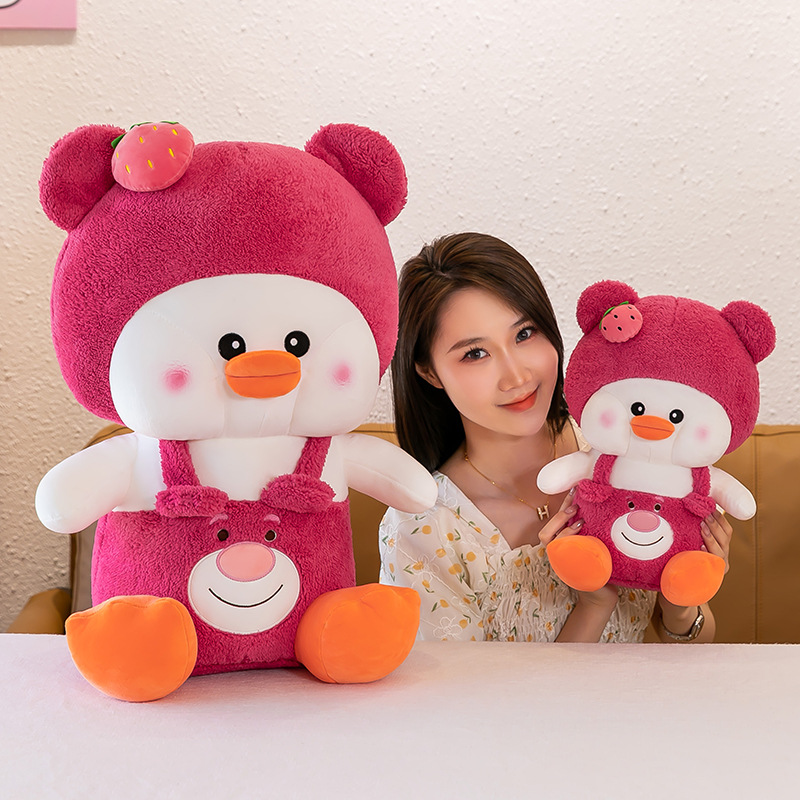 新款草莓嘟嘟鸭毛绒玩具变身小鸭子公仔玩偶儿童女生礼物抱枕批发
