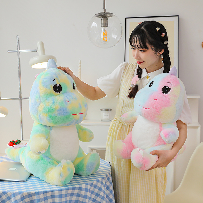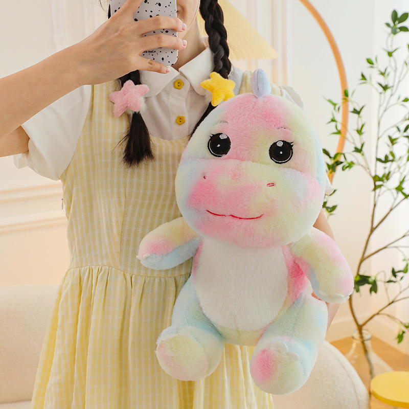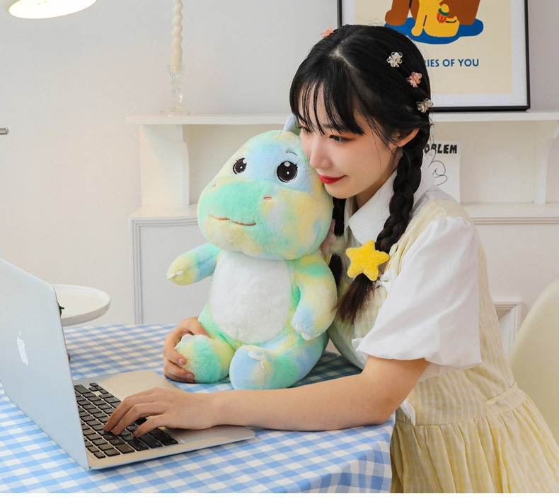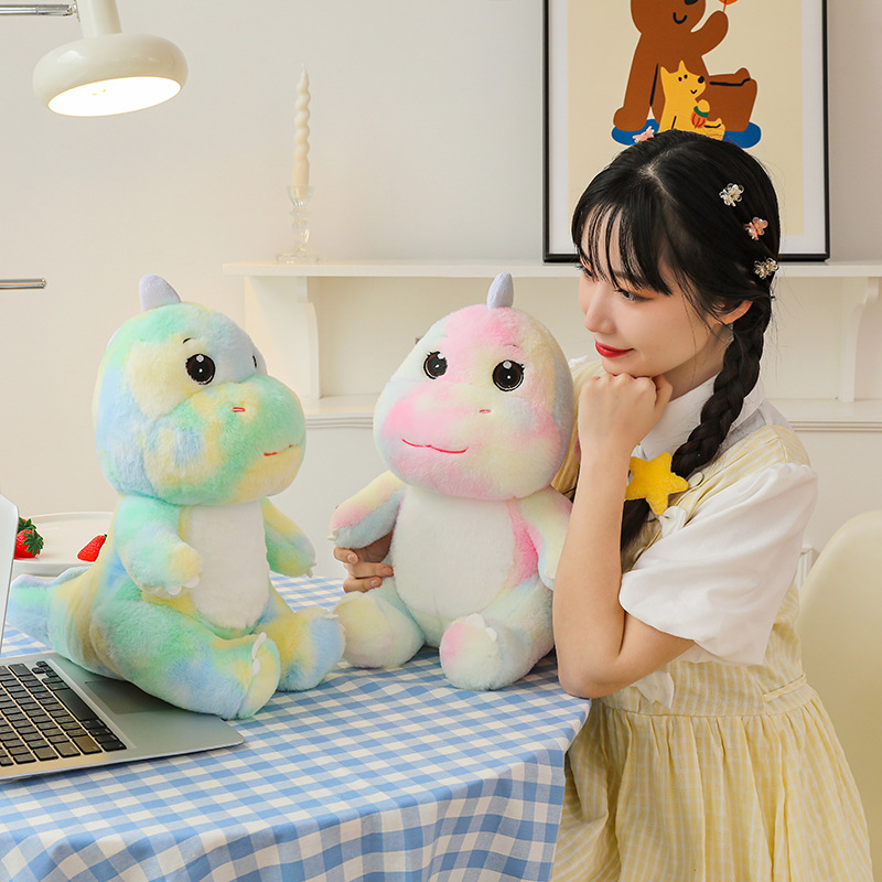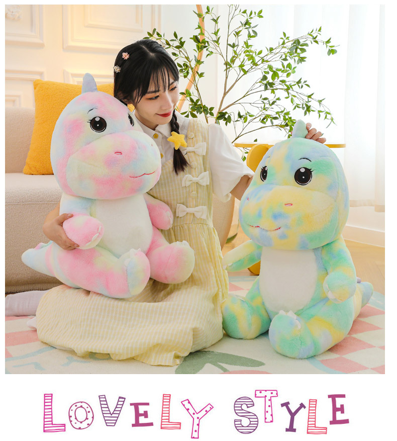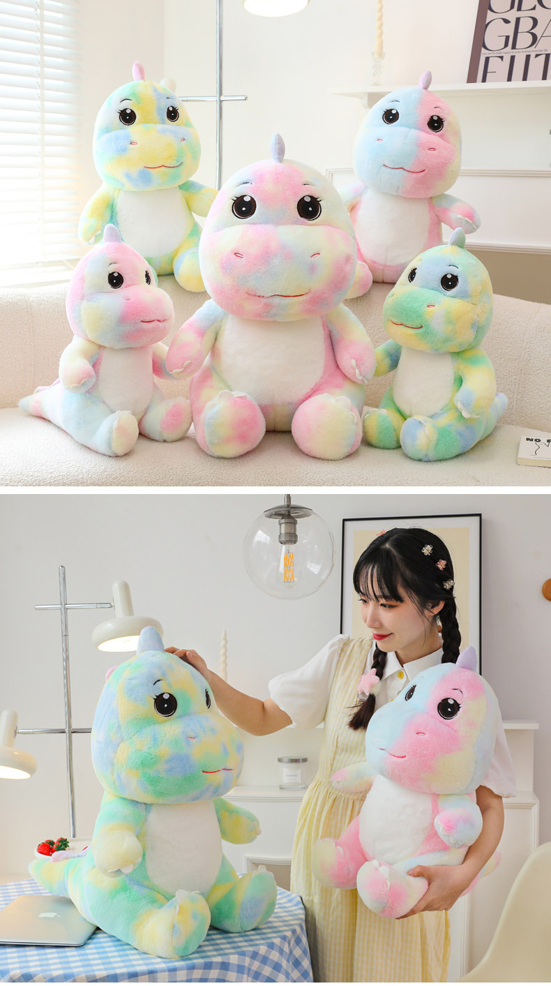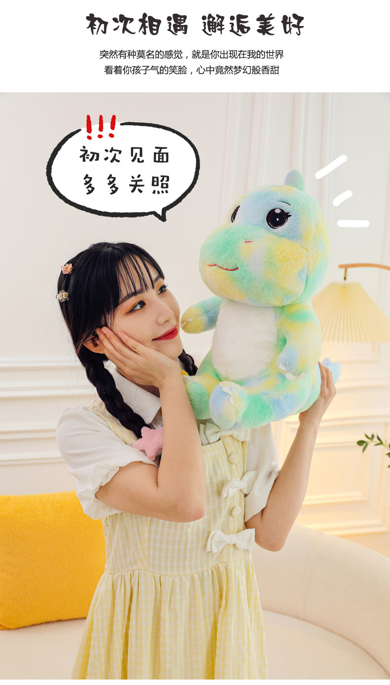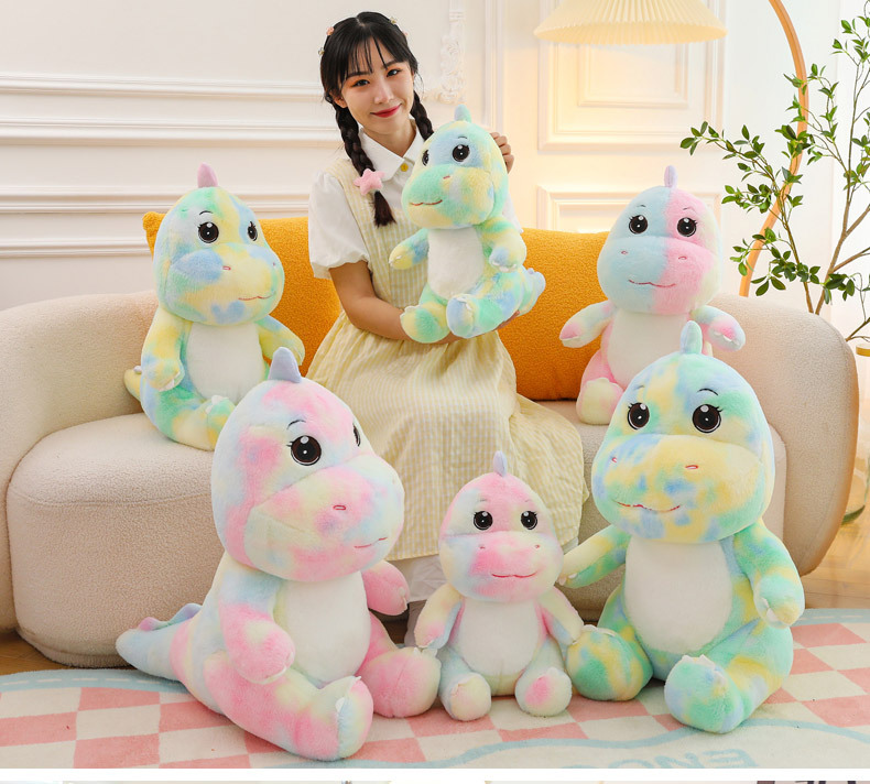 呆萌炫彩恐龙毛绒玩具可爱七彩小恐龙公仔儿童生日礼物女孩娃娃