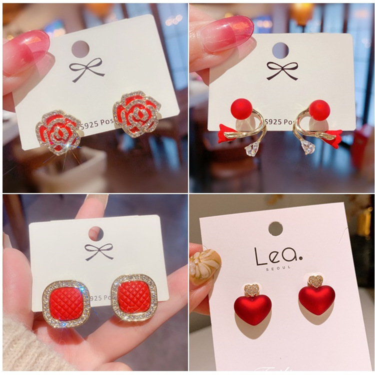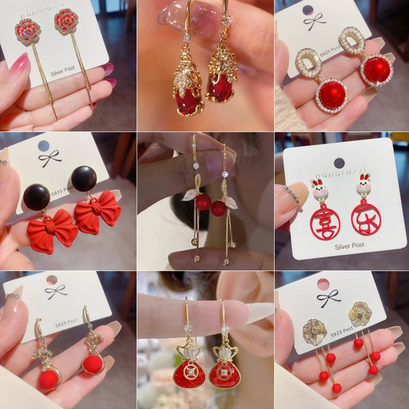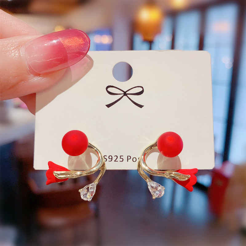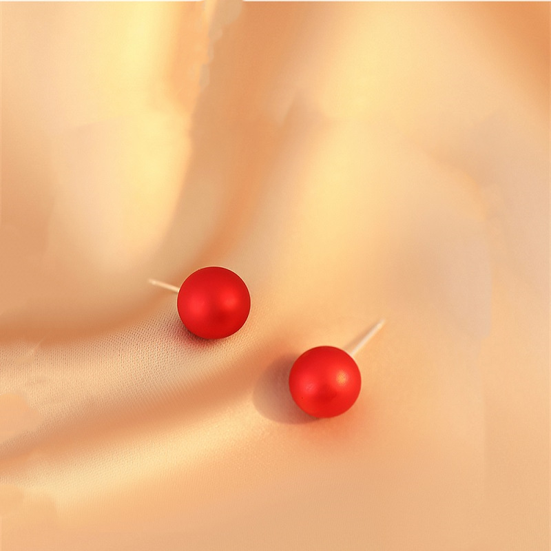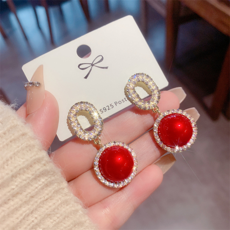 过年戴的喜庆红色珍珠耳环气质高级感s925银针耳钉女通勤耳饰批发