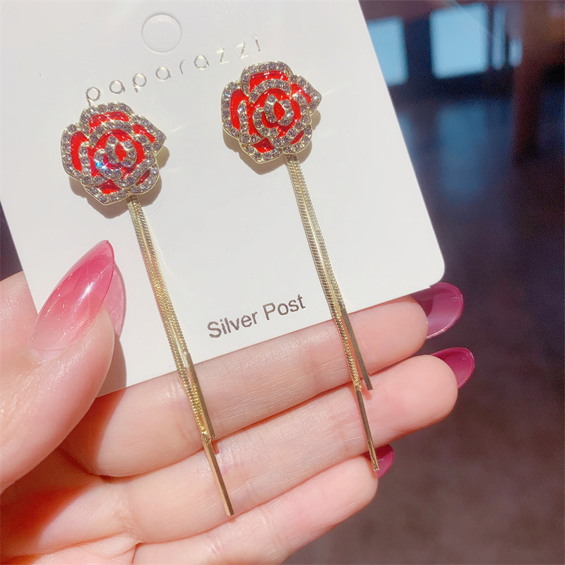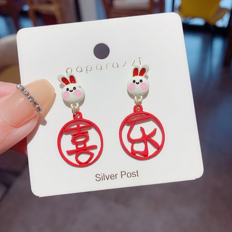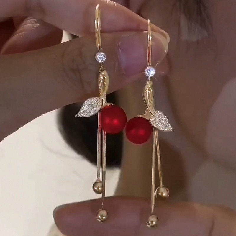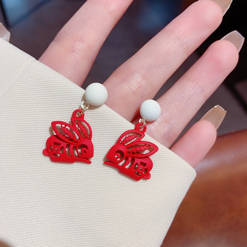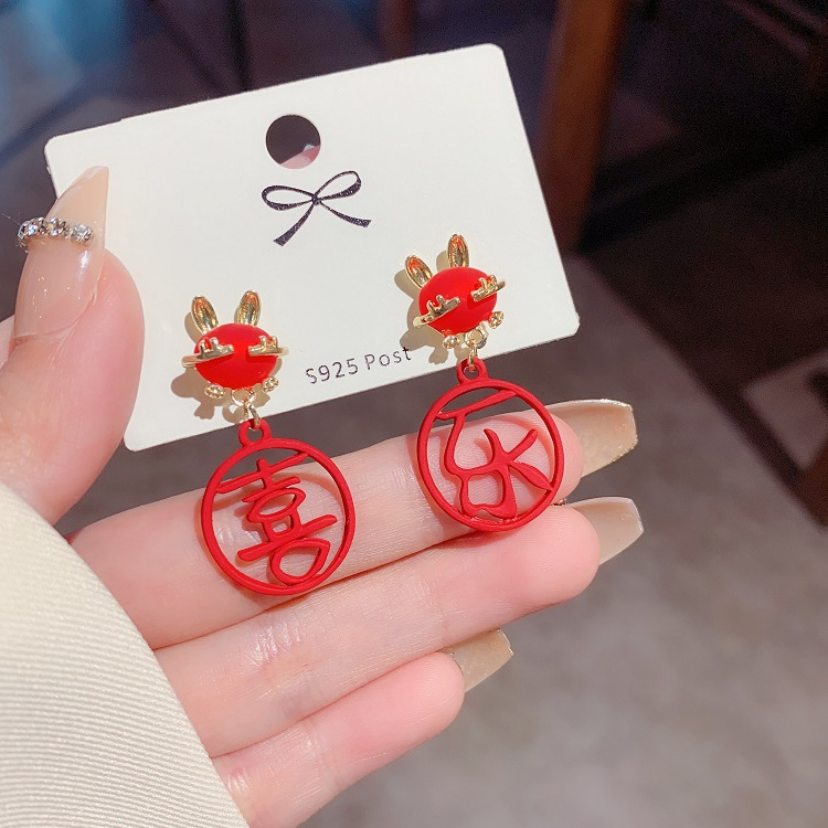 过年戴的喜庆红色珍珠耳环气质高级感s925银针耳钉女通勤耳饰批发