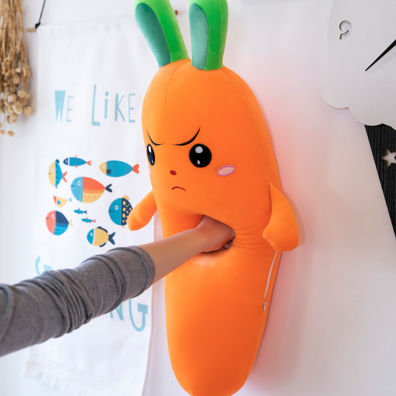 现款兔耳朵胡萝卜抱枕 可爱毛绒玩具女生夹腿娃娃 羽绒棉柔软公仔