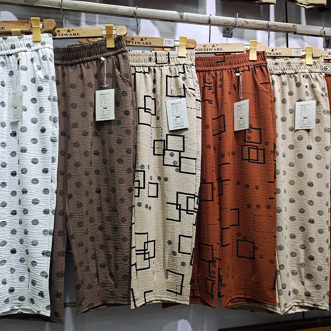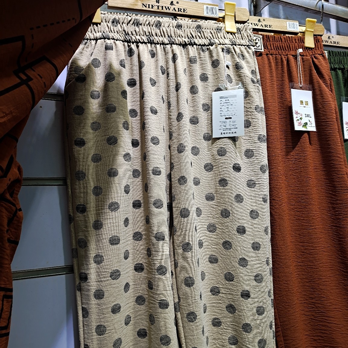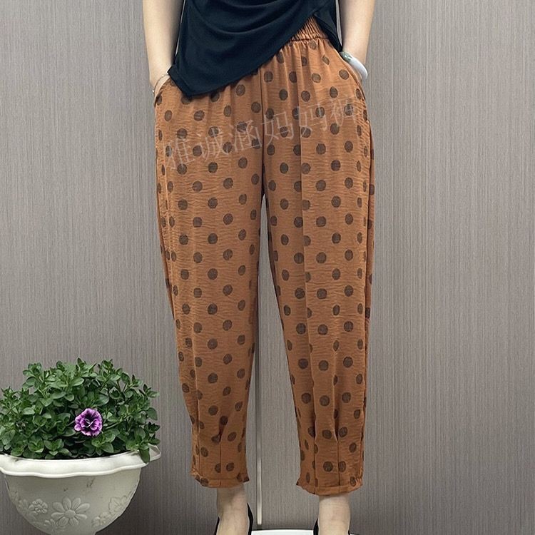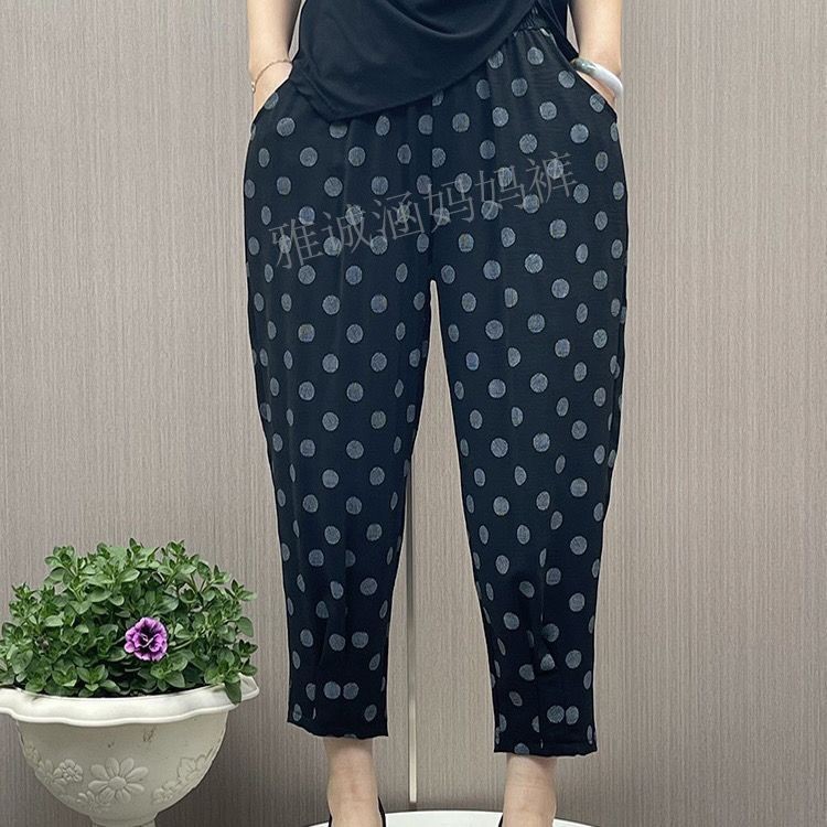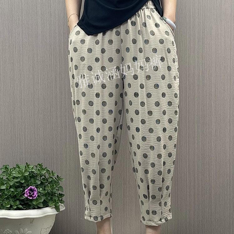 妈妈棉麻八分裤夏季薄款宽松高腰显瘦中老年天丝皱休闲裤亚麻女裤