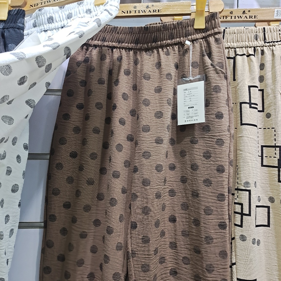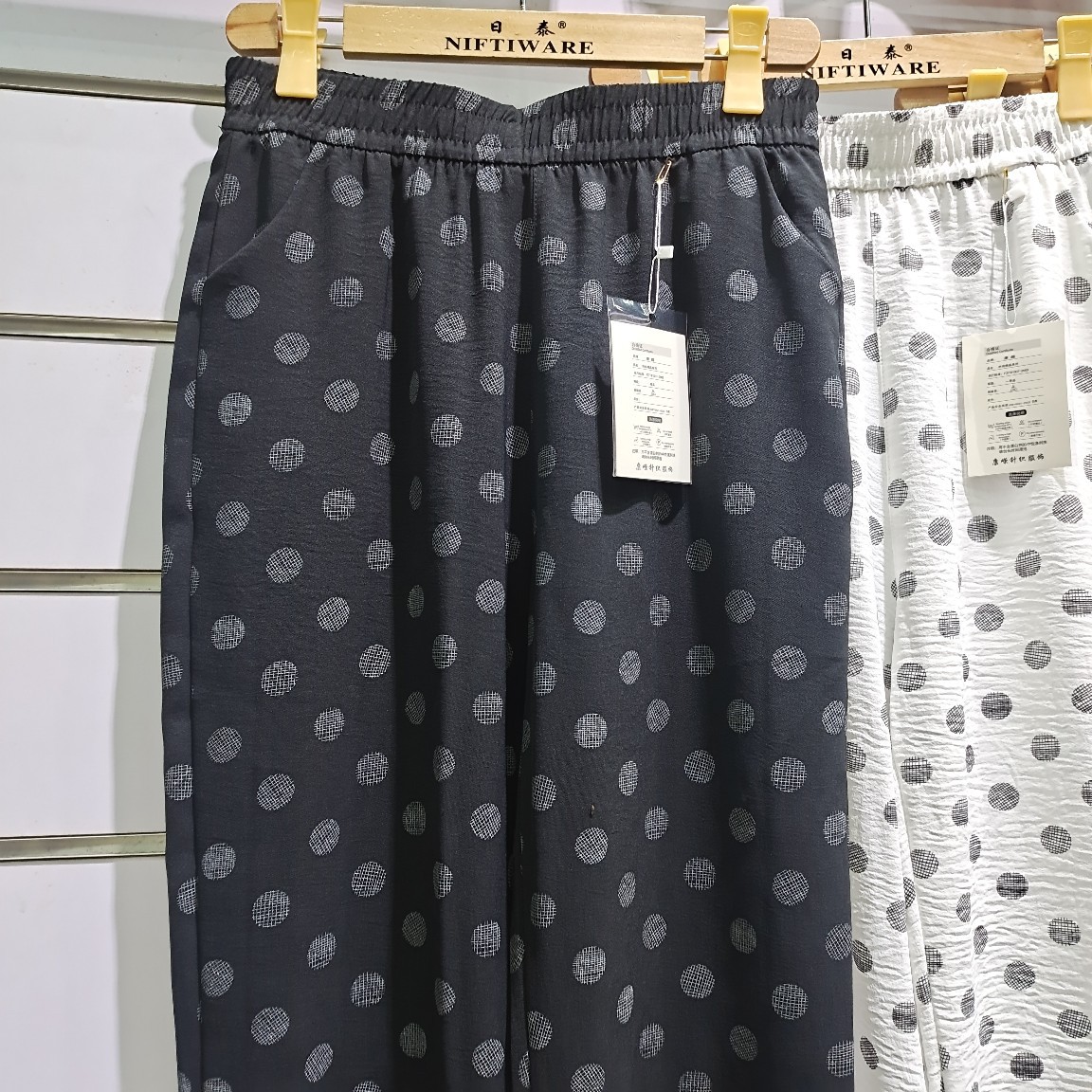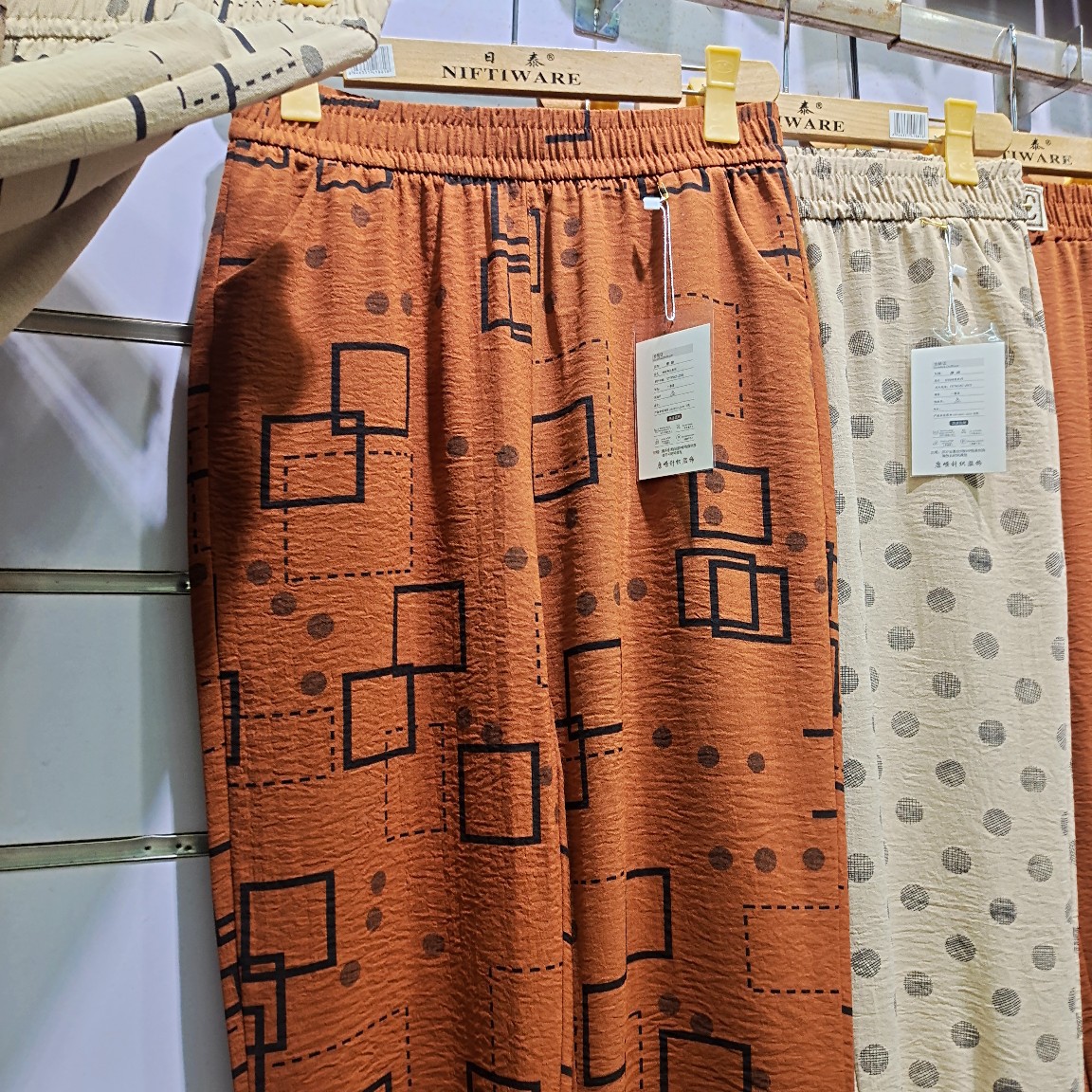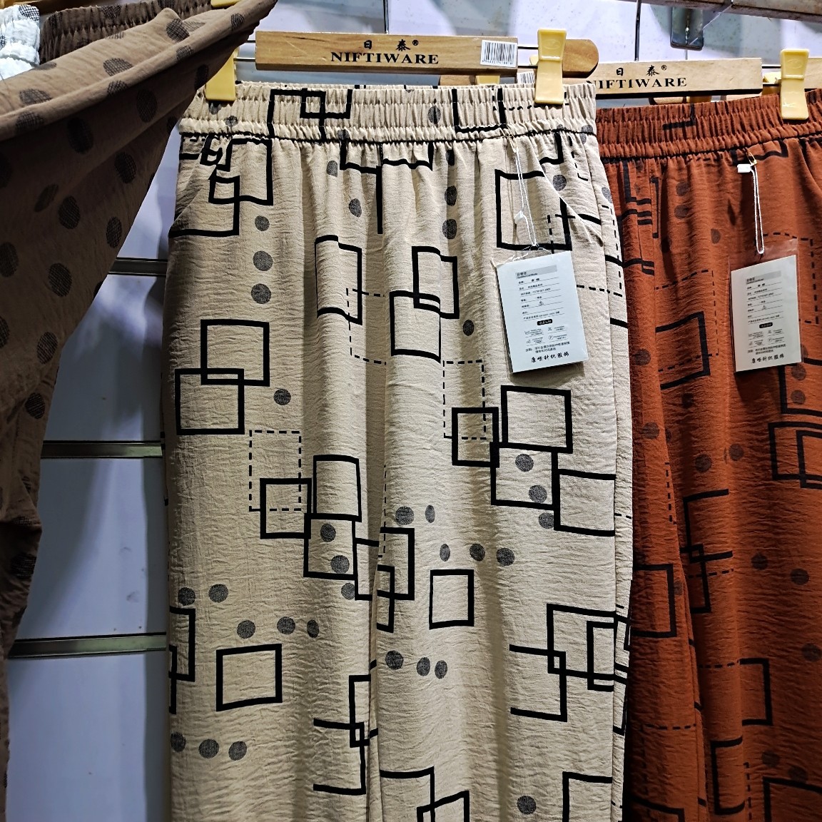 妈妈棉麻八分裤夏季薄款宽松高腰显瘦中老年天丝皱休闲裤亚麻女裤