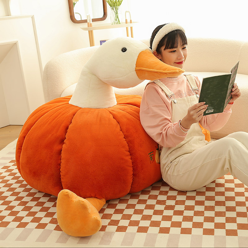 可爱南瓜鸭子玩偶毛绒玩具咘喃鸭抱枕软糯不难鸭靠枕批发代发