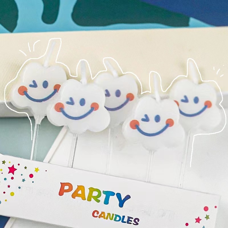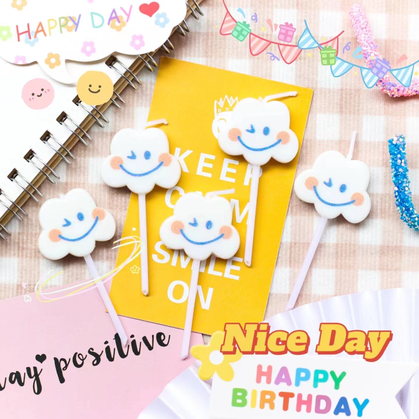 可爱云朵笑脸生日蛋糕蜡烛儿童派对装饰微笑白云蜡烛插件