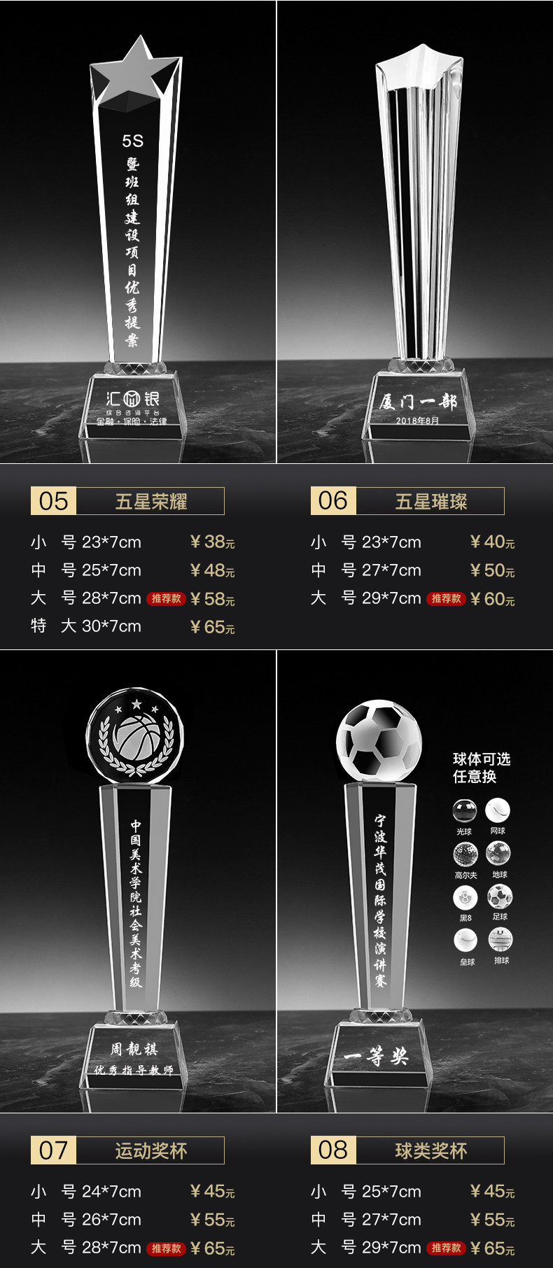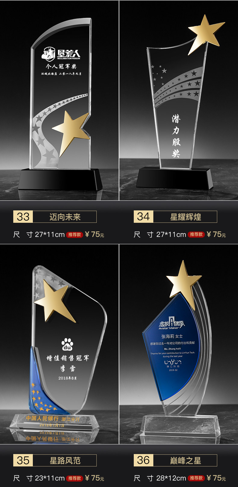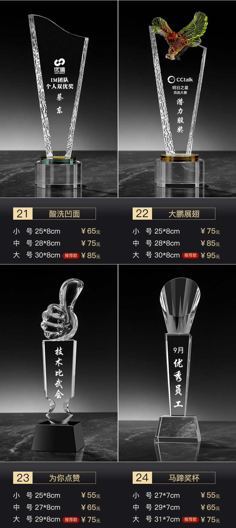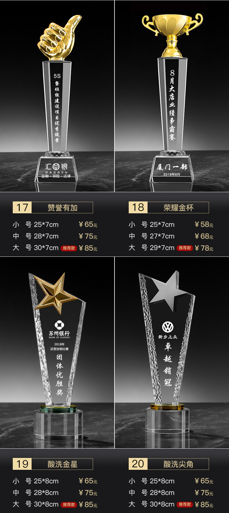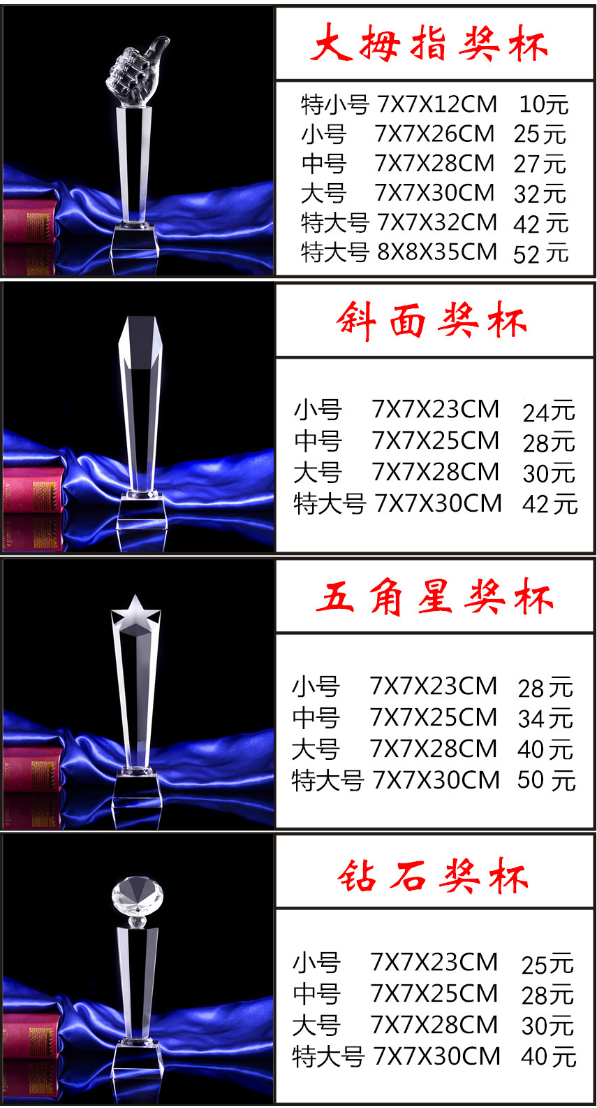 厂家水晶奖杯批发奖牌制作金属大拇指木质奖座年会颁奖树脂五角星