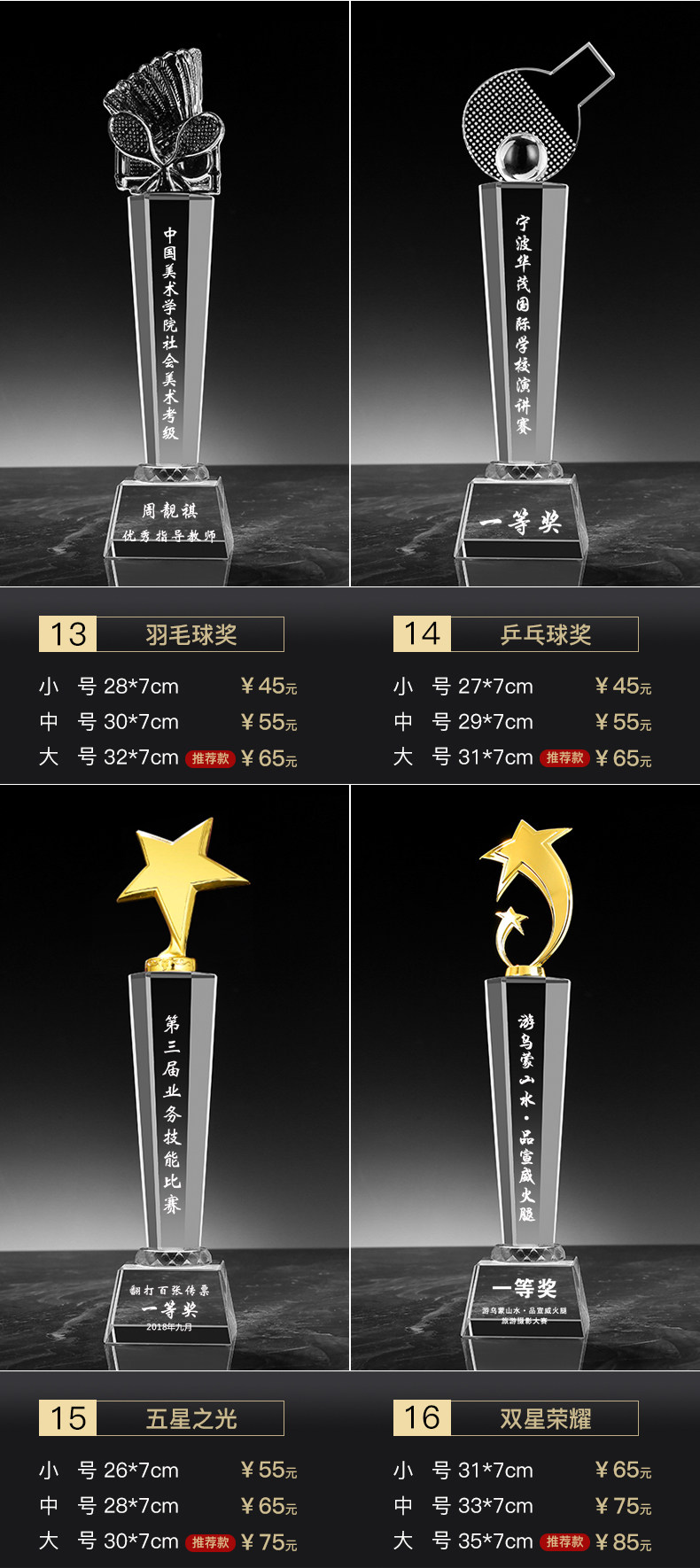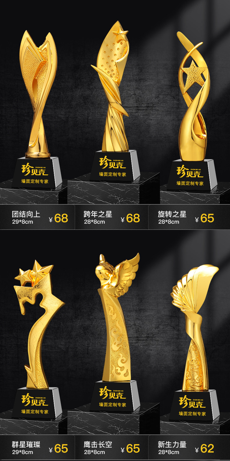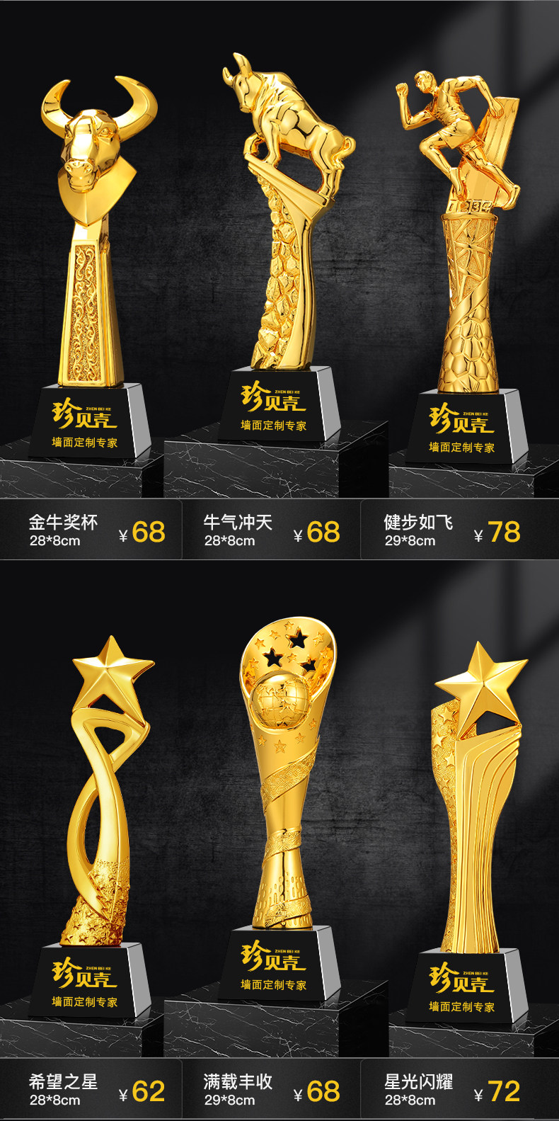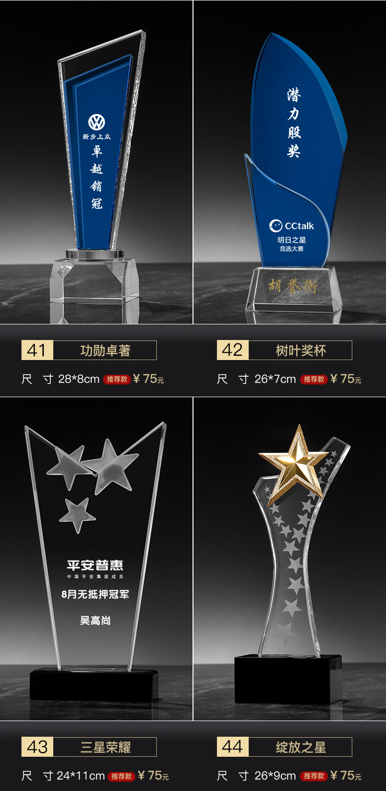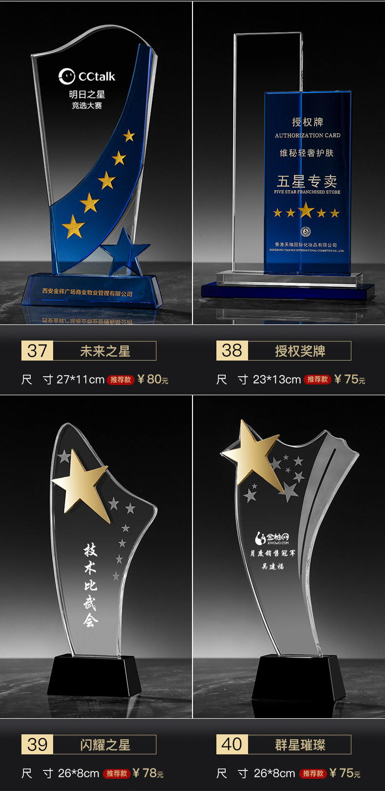 厂家水晶奖杯批发奖牌制作金属大拇指木质奖座年会颁奖树脂五角星