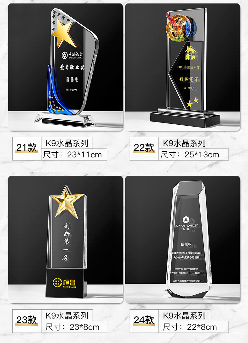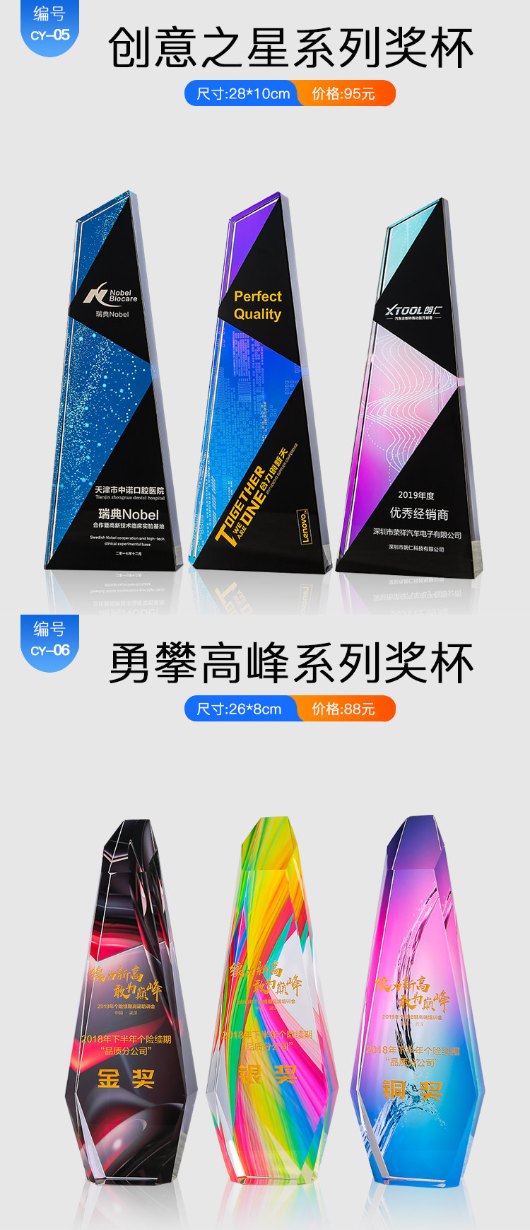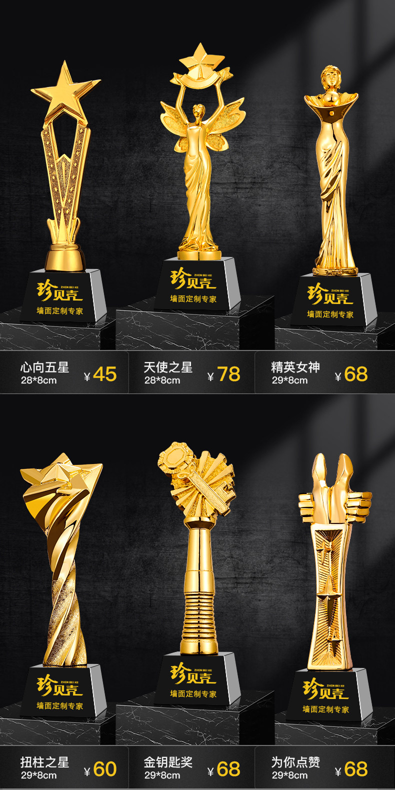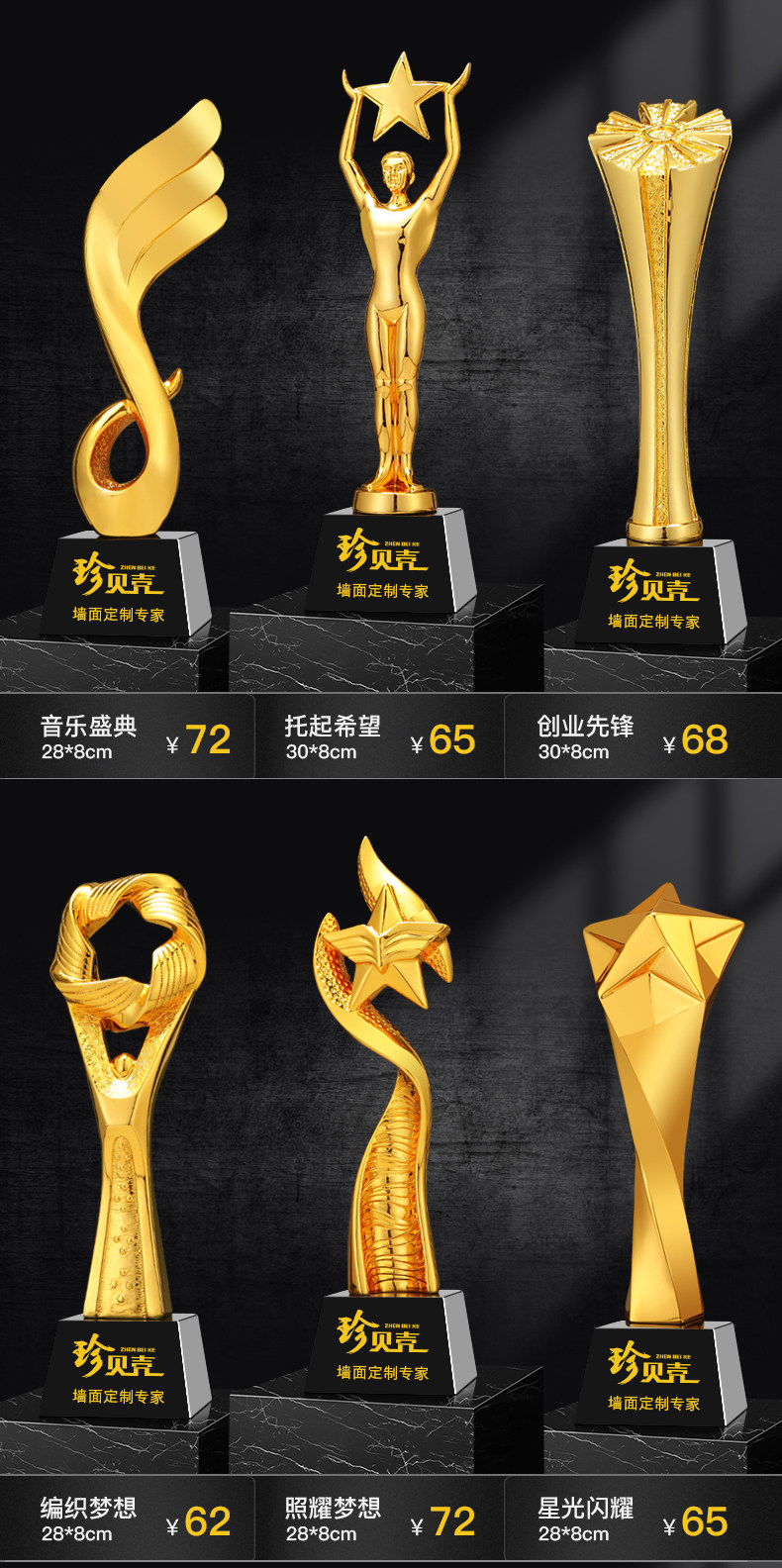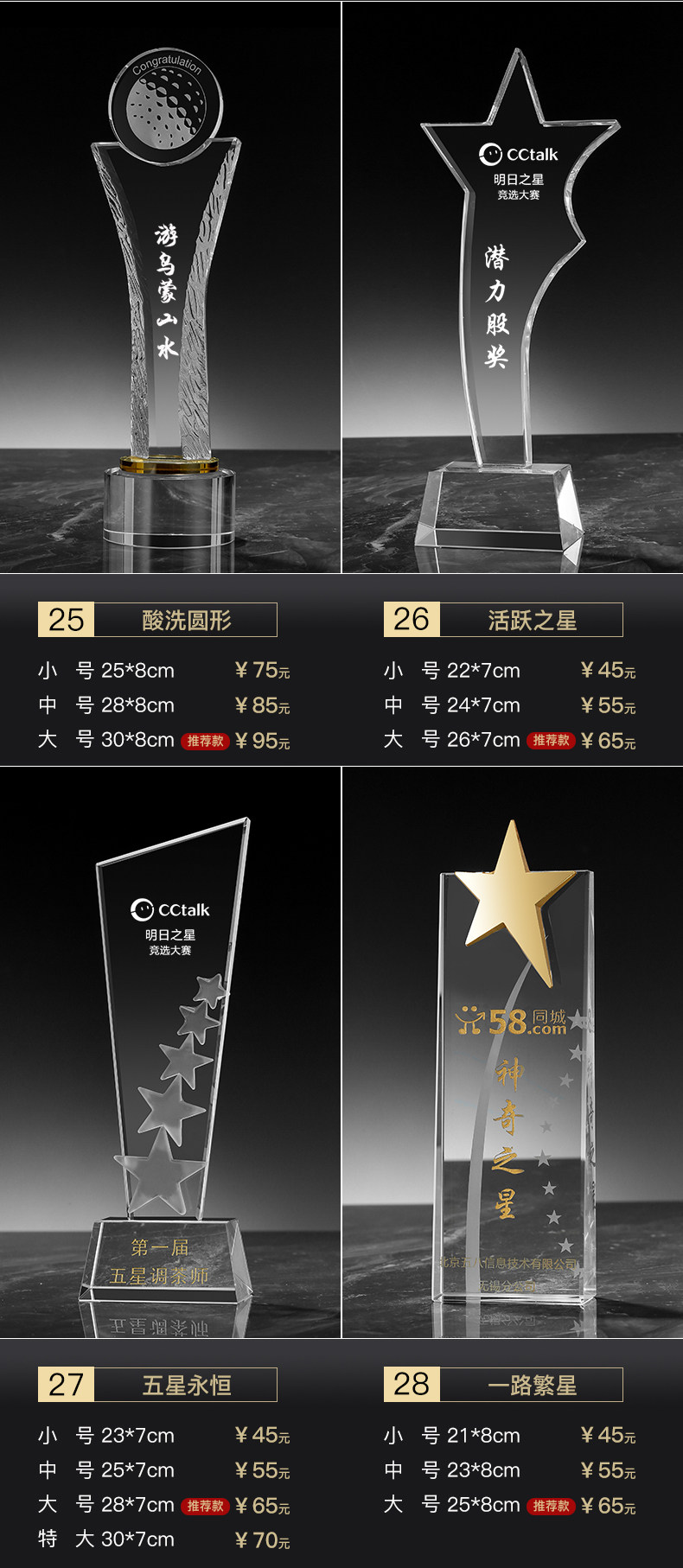 厂家水晶奖杯批发奖牌制作金属大拇指木质奖座年会颁奖树脂五角星