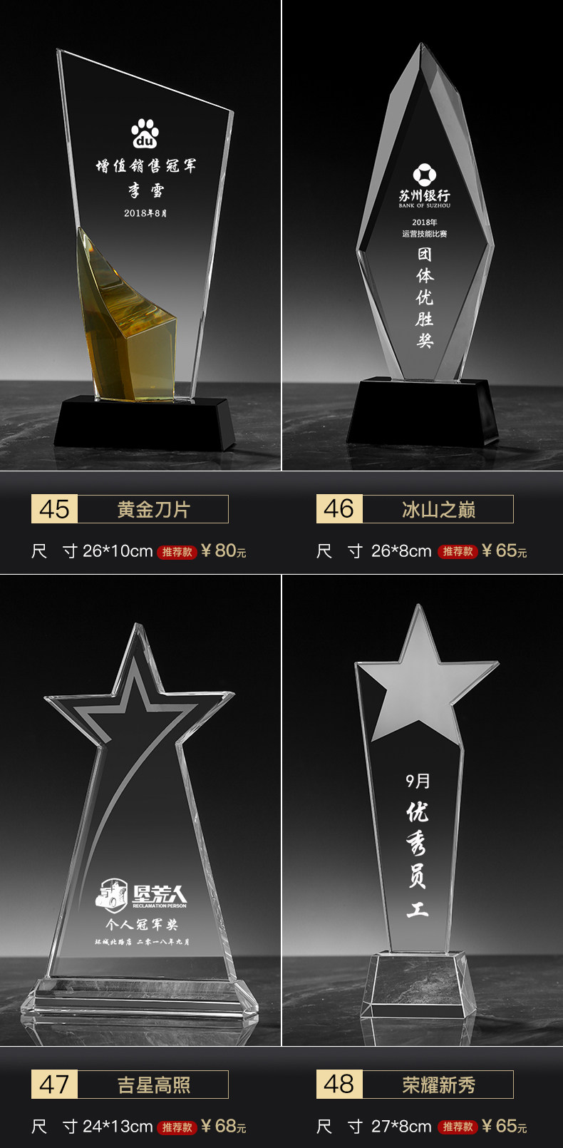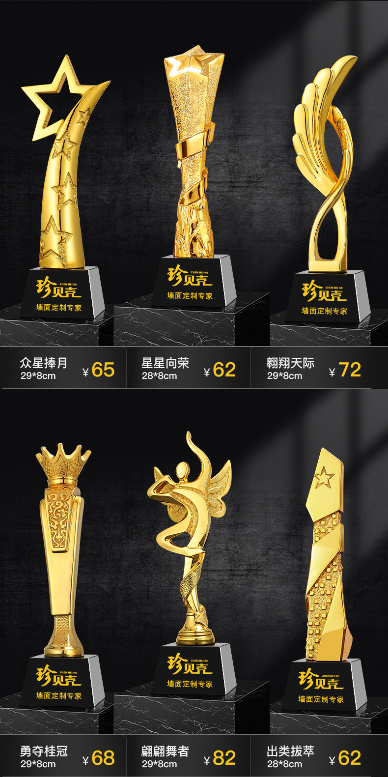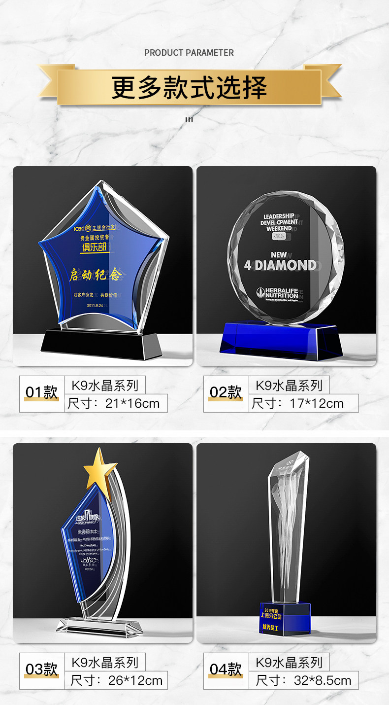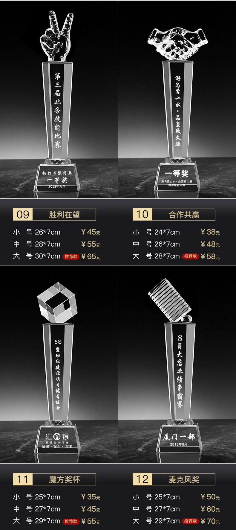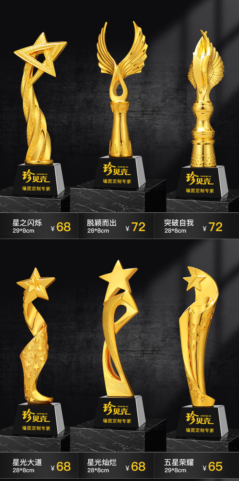 厂家水晶奖杯批发奖牌制作金属大拇指木质奖座年会颁奖树脂五角星