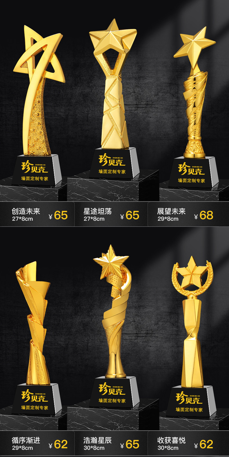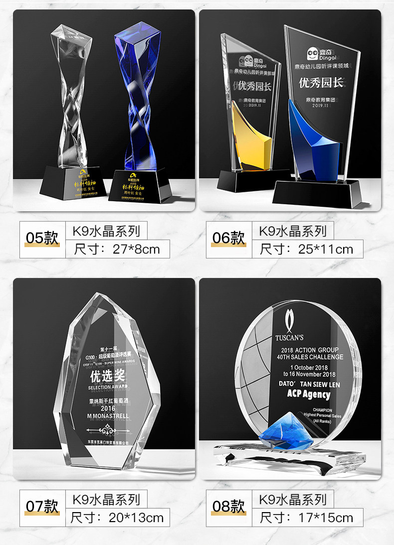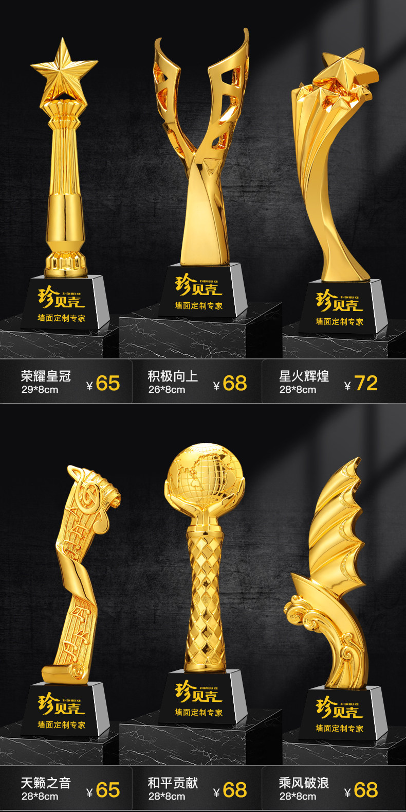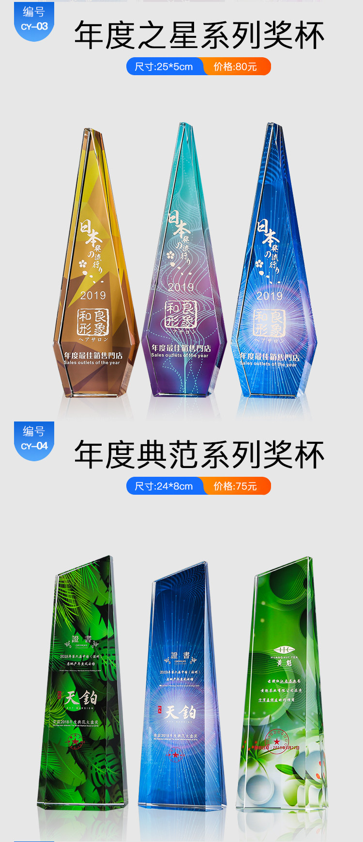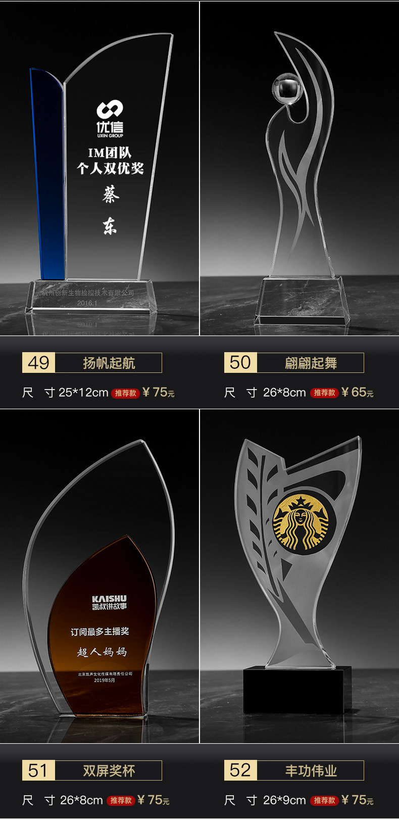 厂家水晶奖杯批发奖牌制作金属大拇指木质奖座年会颁奖树脂五角星