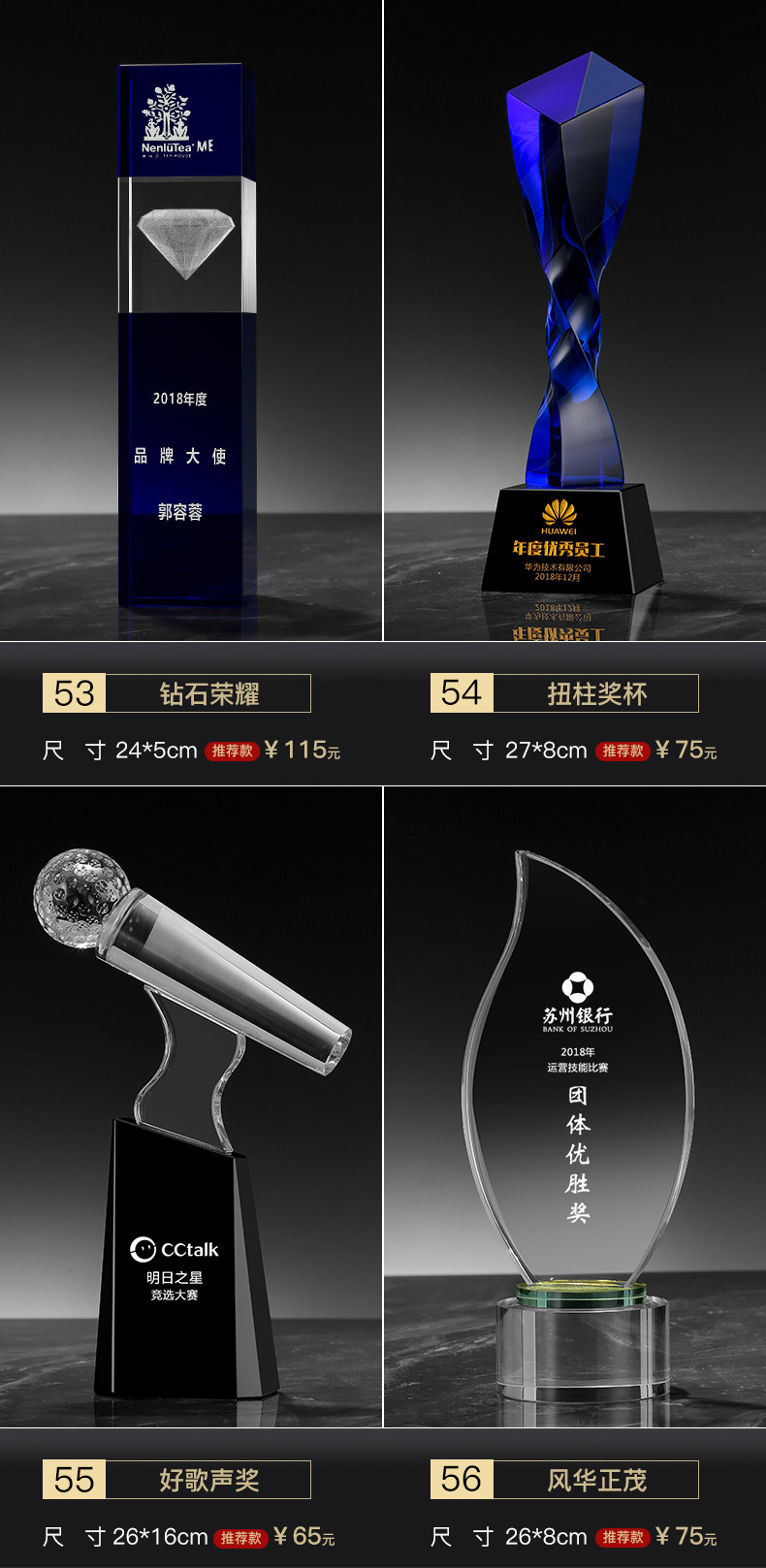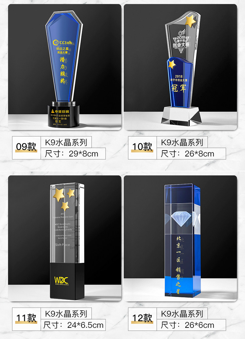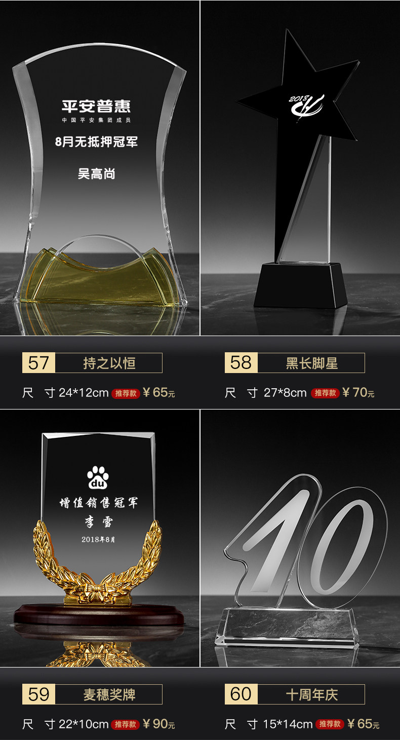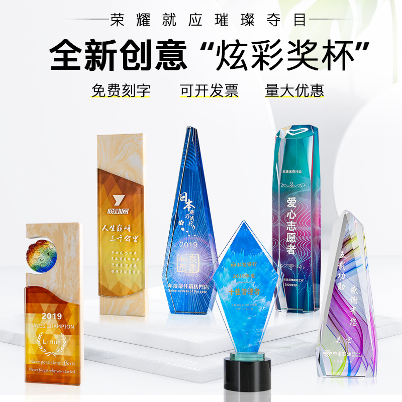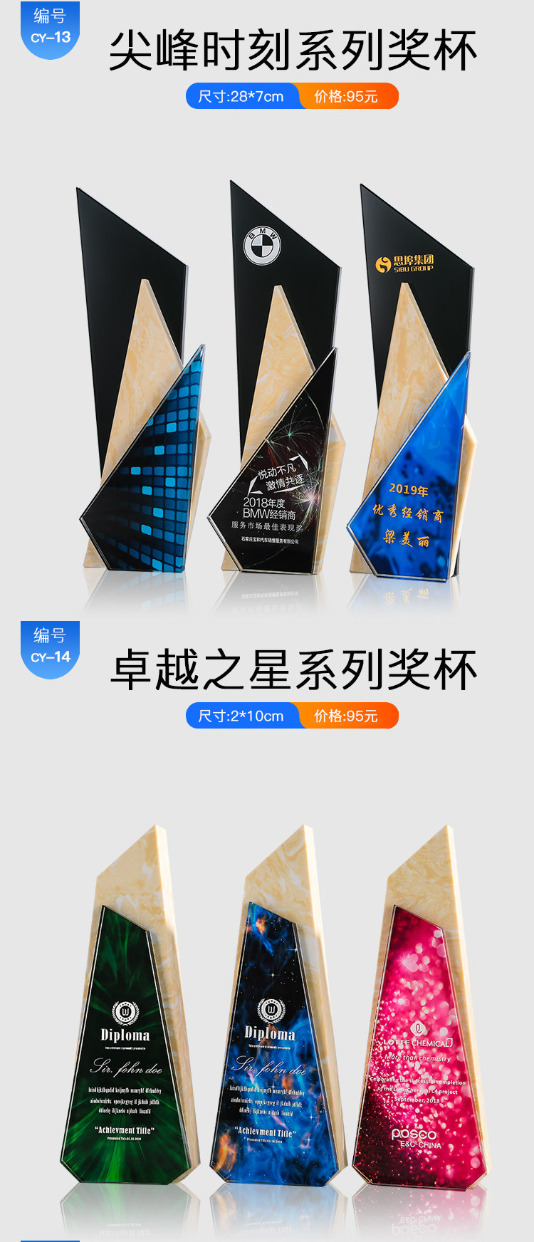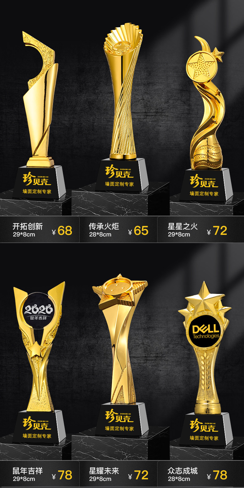 厂家水晶奖杯批发奖牌制作金属大拇指木质奖座年会颁奖树脂五角星