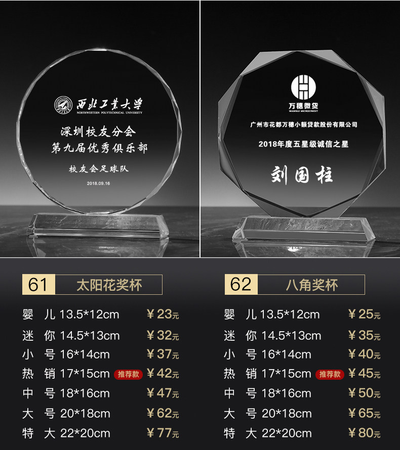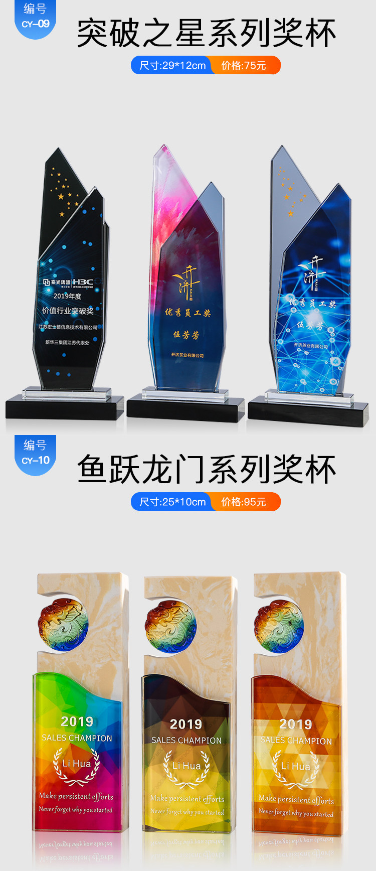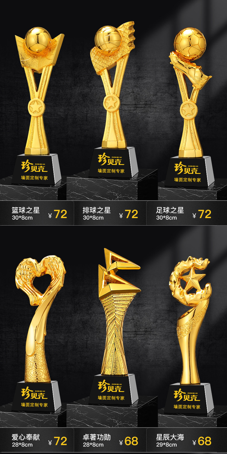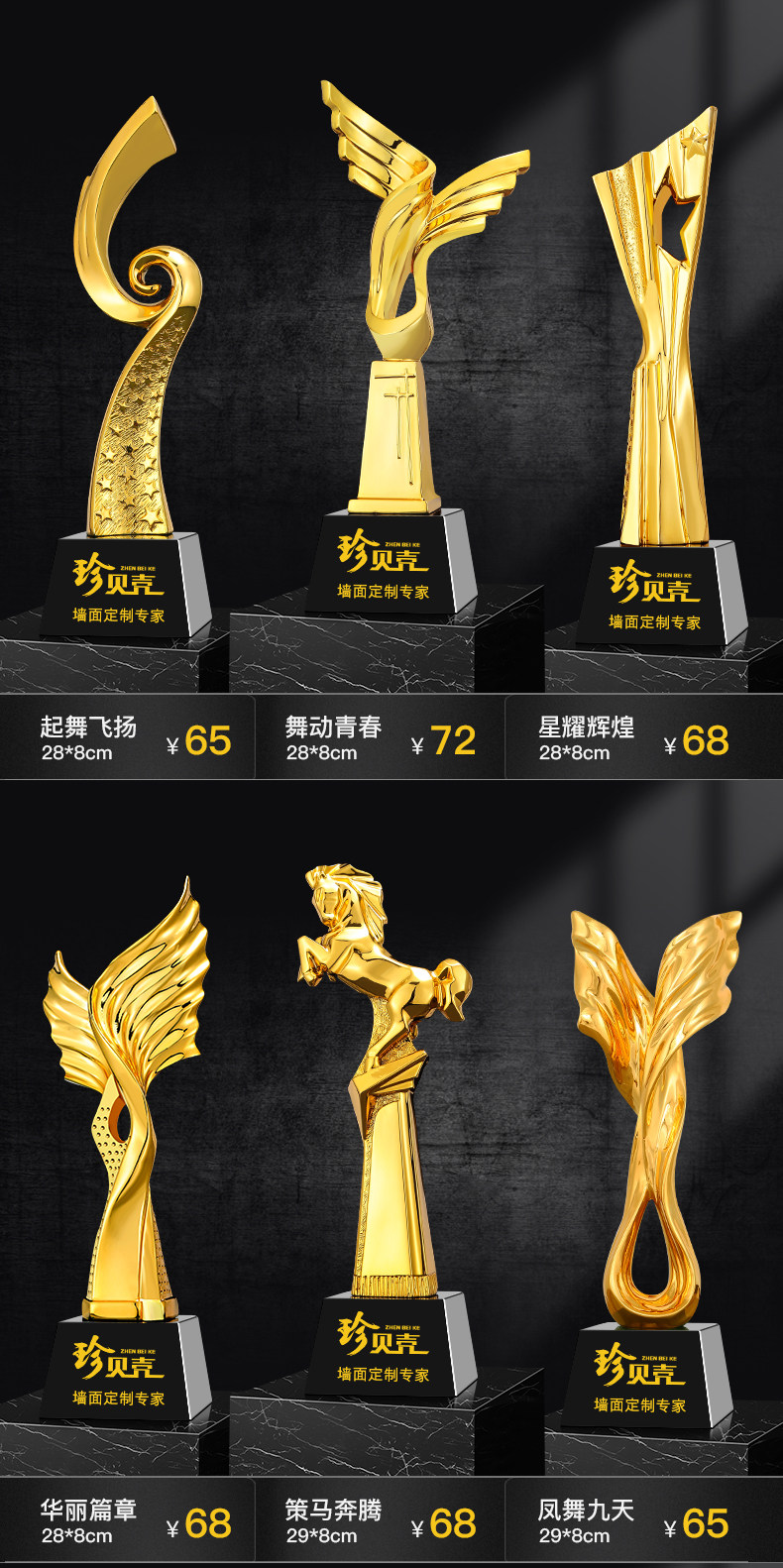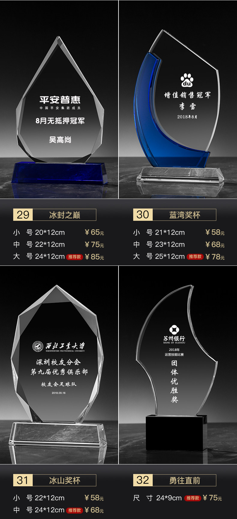 厂家水晶奖杯批发奖牌制作金属大拇指木质奖座年会颁奖树脂五角星