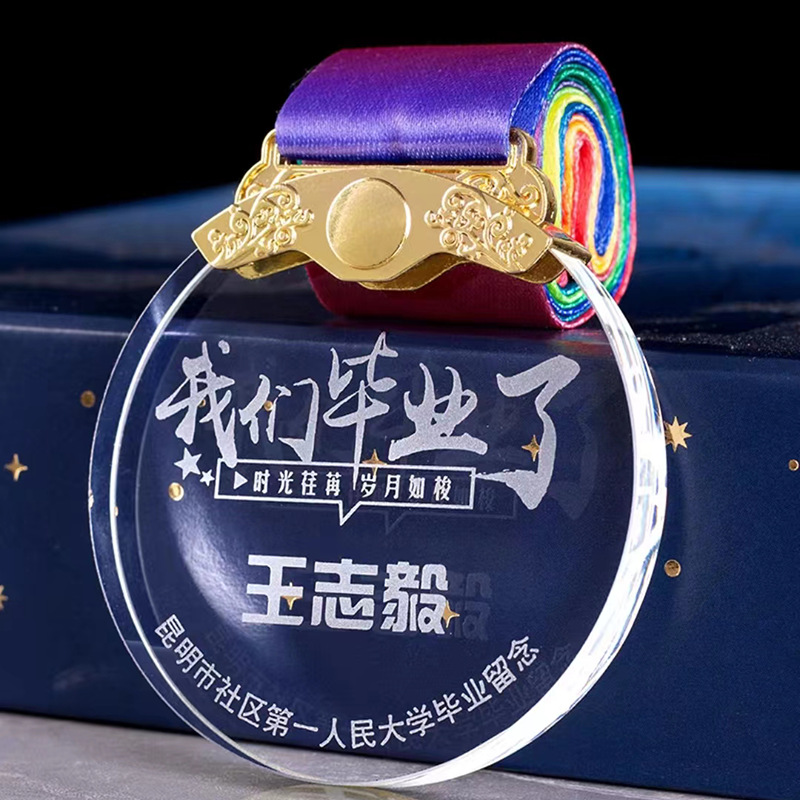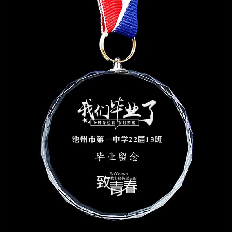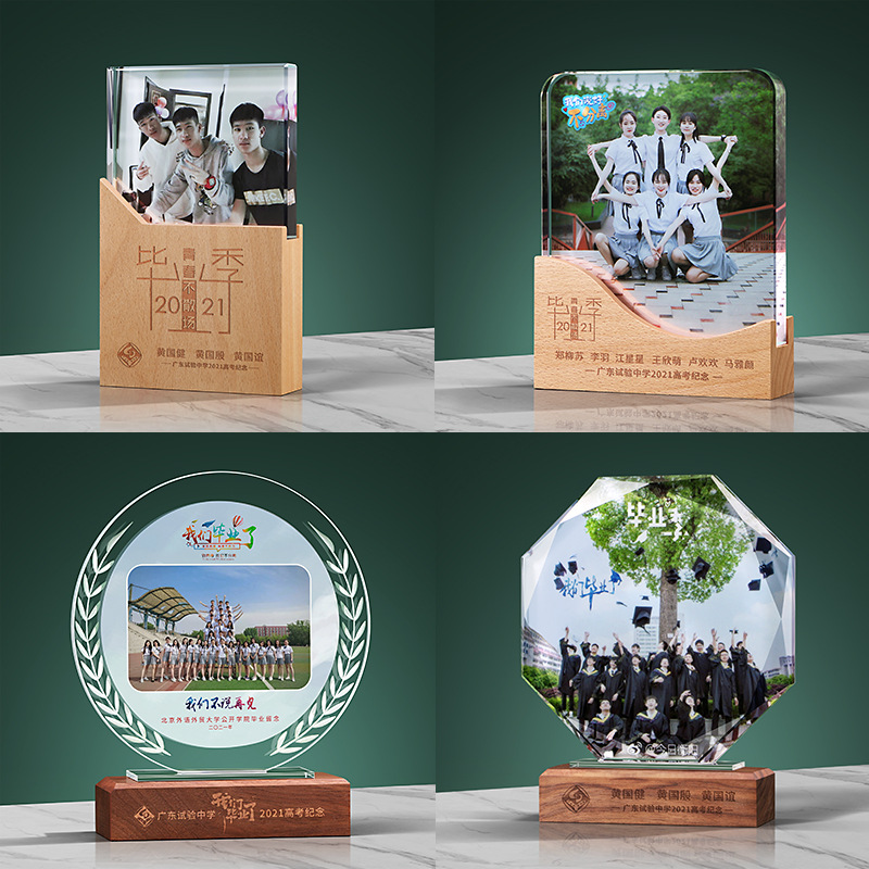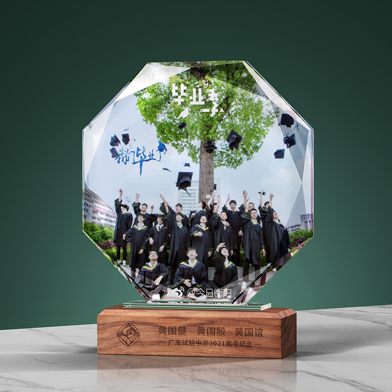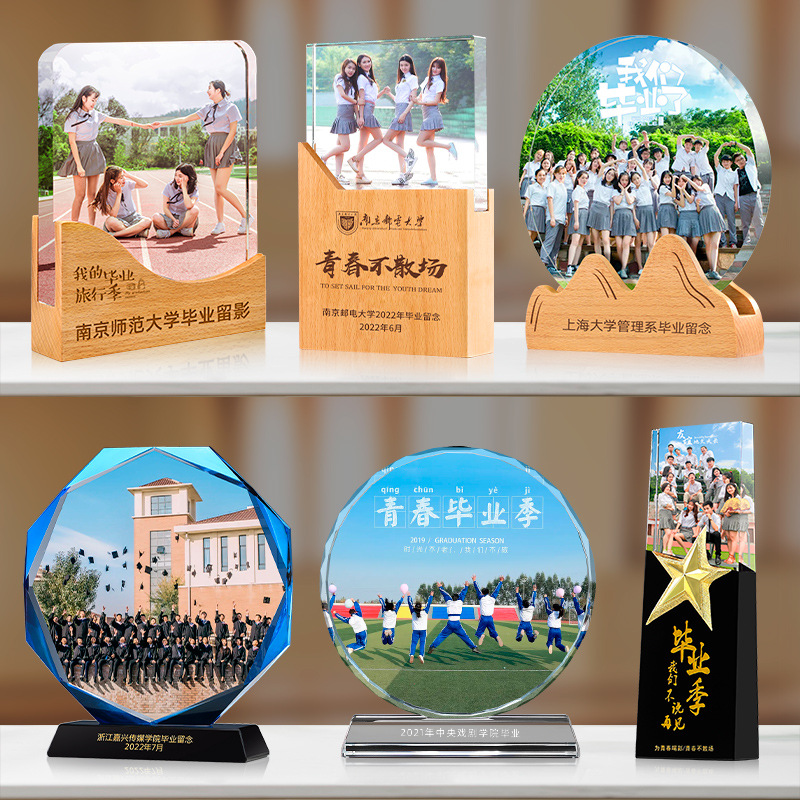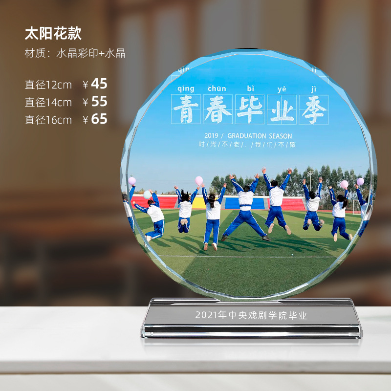 创意水晶奖杯制作礼物摆件同学毕业季周年留恋照片太阳花刻字奖牌