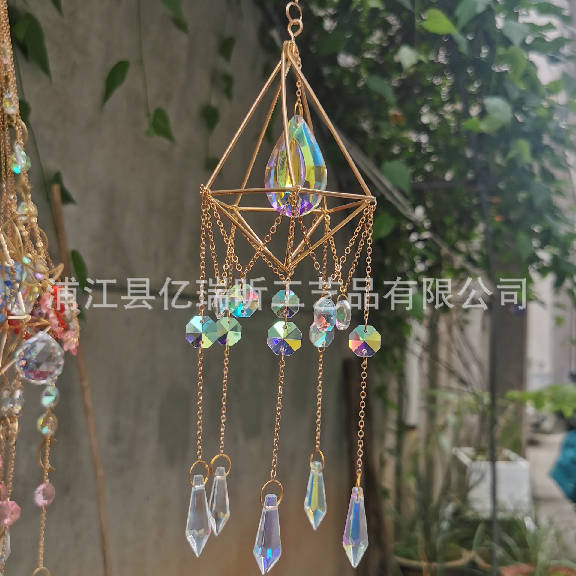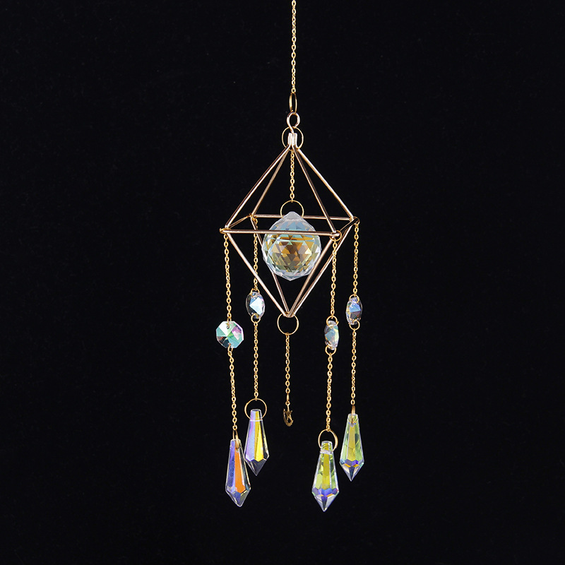 跨境亚马逊园艺工艺品空气水晶风铃挂链AB彩灯饰球吊坠水晶挂件