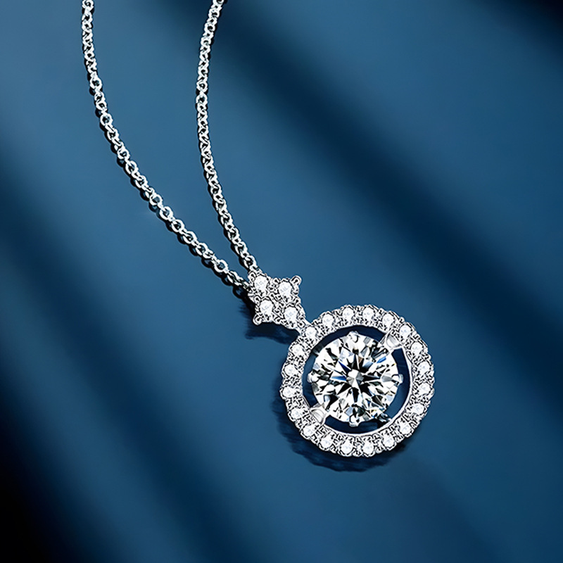 跨境S925银灵动钟爱莫桑石项链吊坠女一克拉饰品项链批发锁骨链