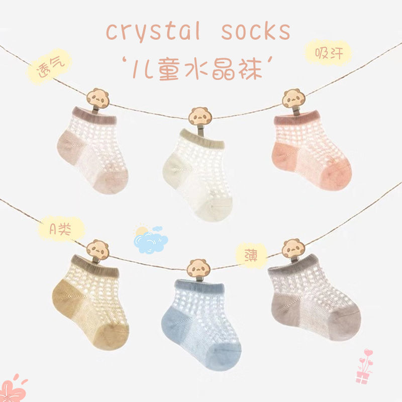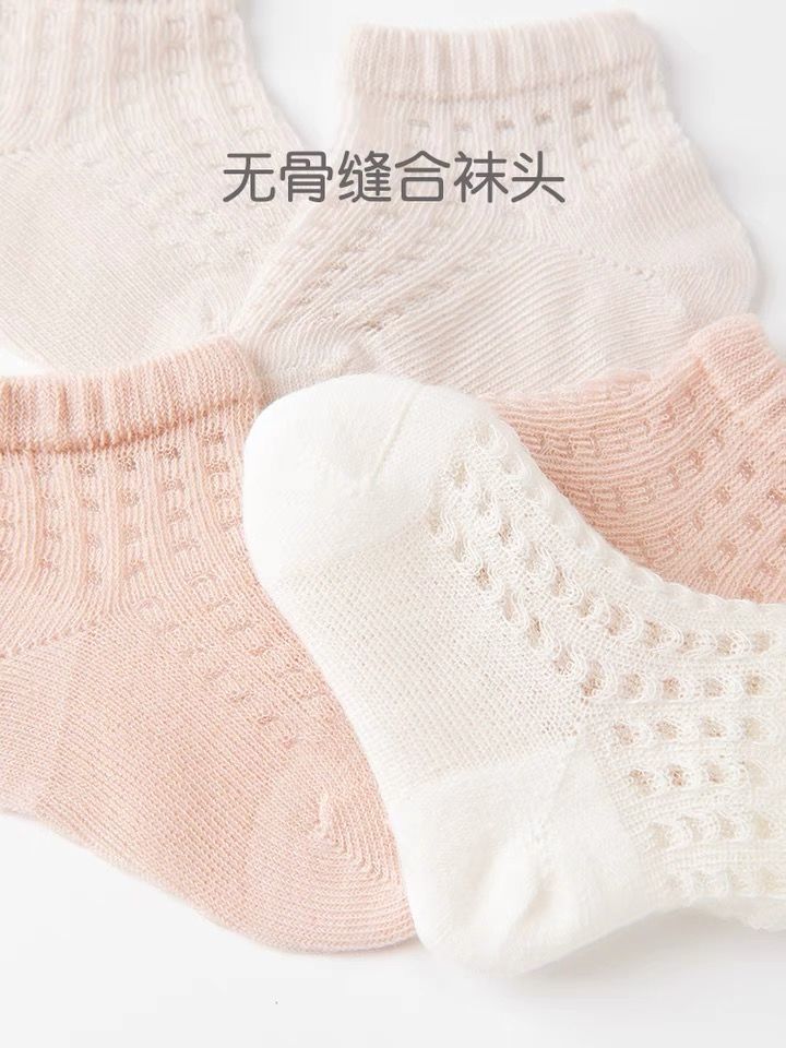 婴儿袜子夏季超薄防掉棉袜新生宝宝亲肤透气网眼儿童短袜松口批发