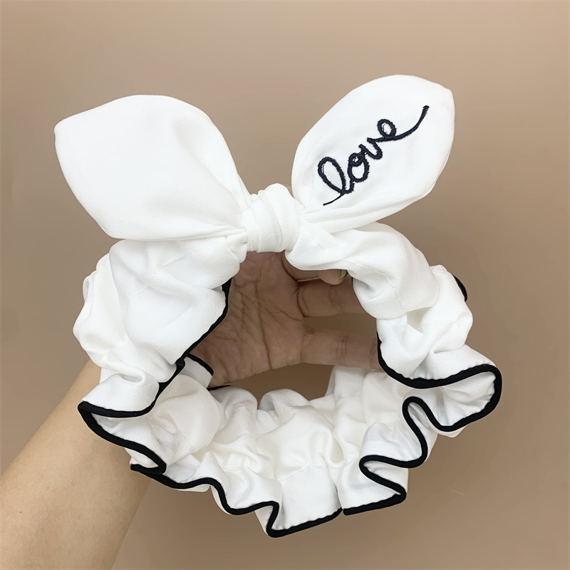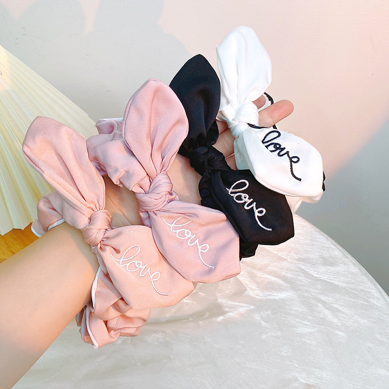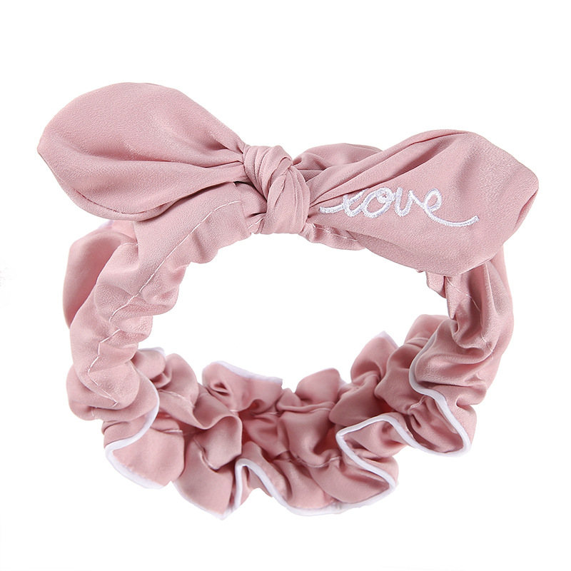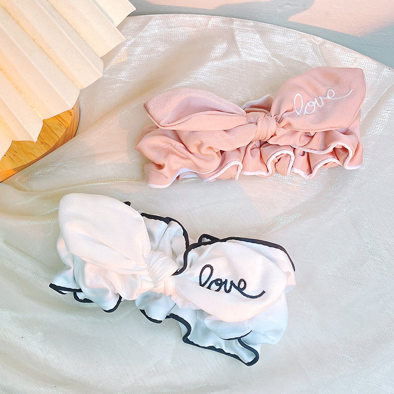 网红弹力宽边洗脸发带 蕾丝刺绣love头带发饰 宽边蝴蝶结束发带