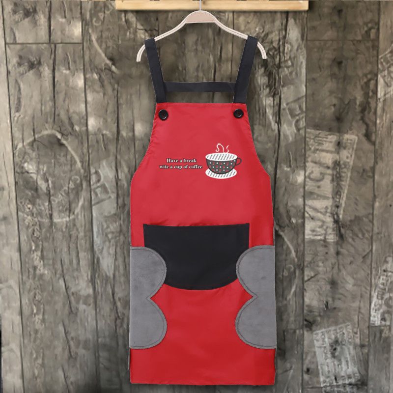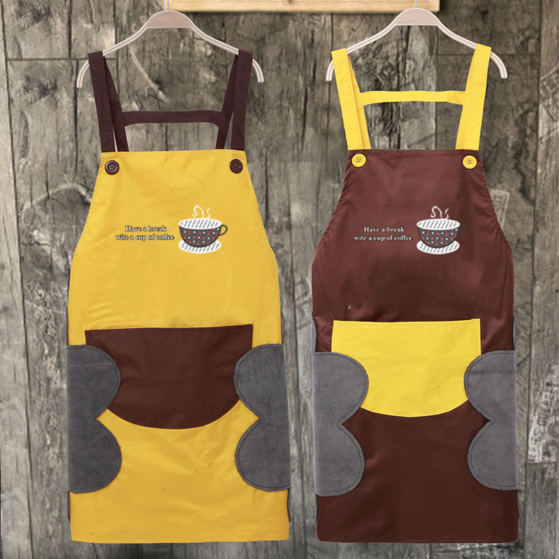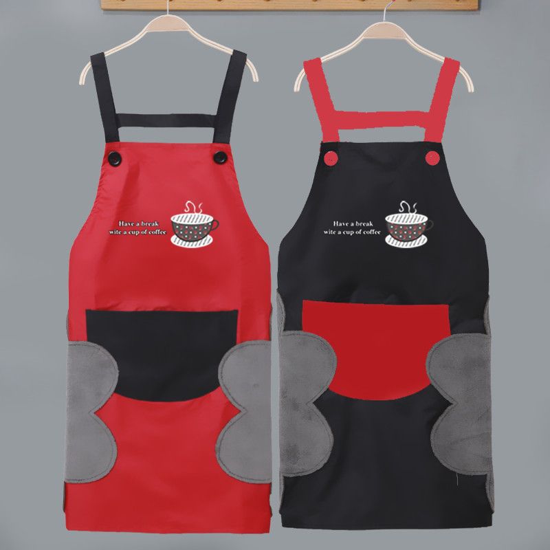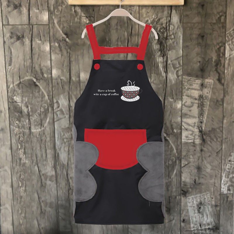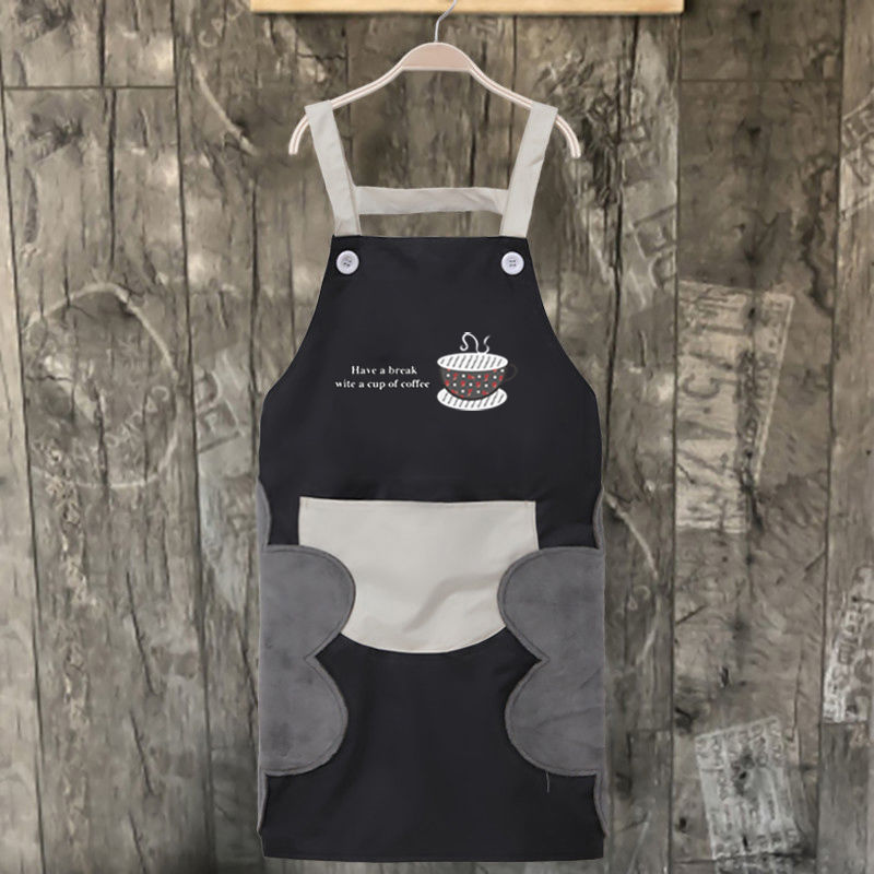 pvc围裙时尚可擦手带口袋围裙女时尚外穿高端围腰防水防油