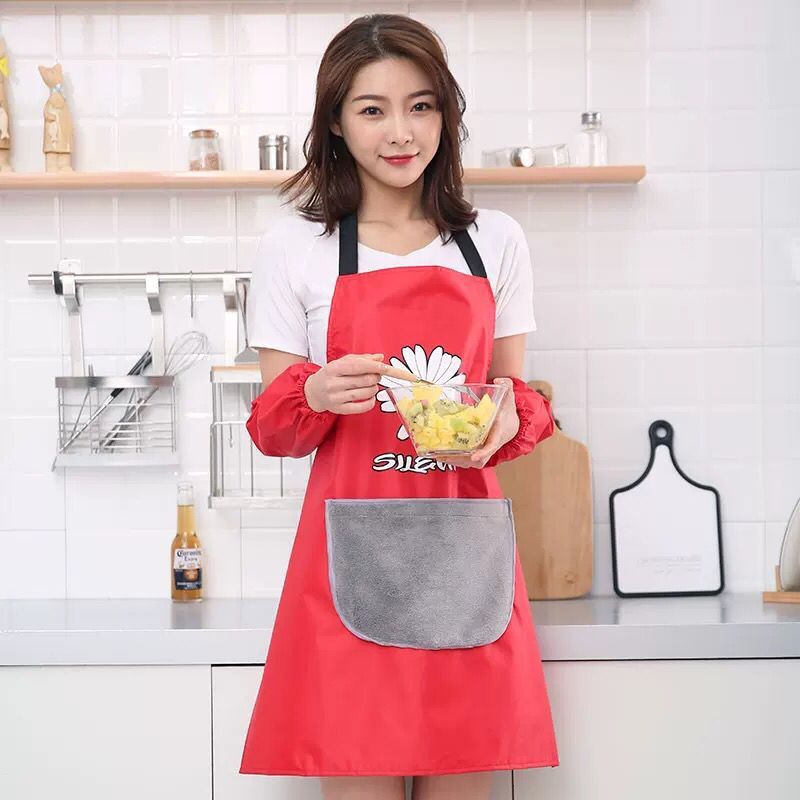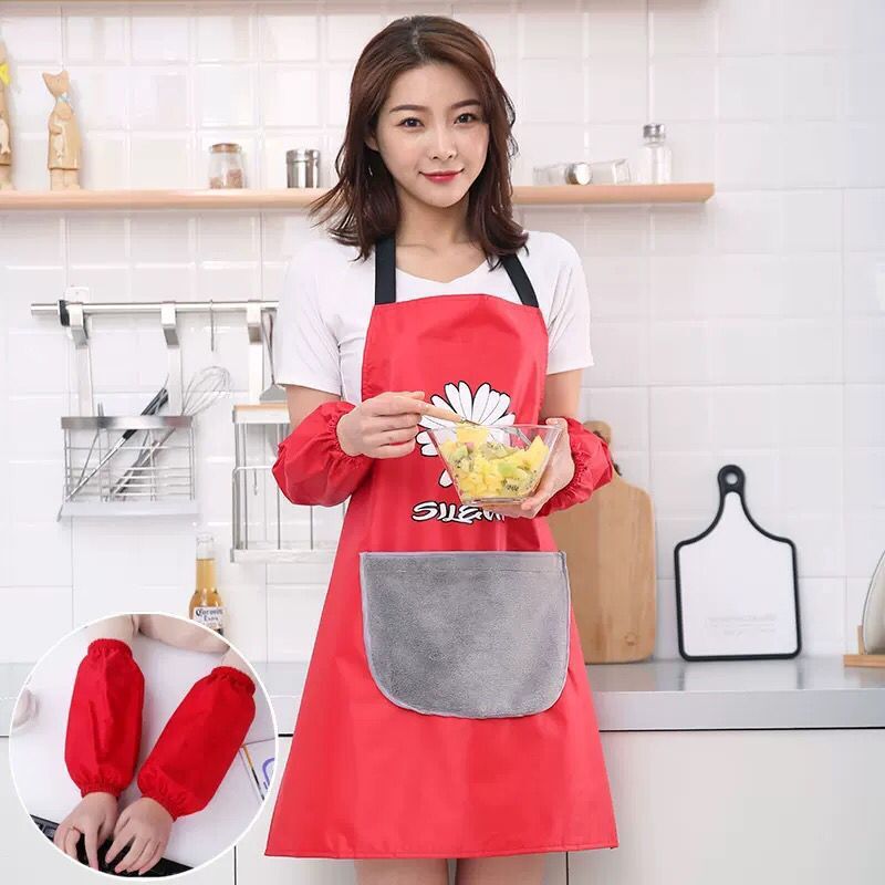防水防油定制广告围裙可拆卸擦手毛巾夏季工作服套袖围腰时尚logo
