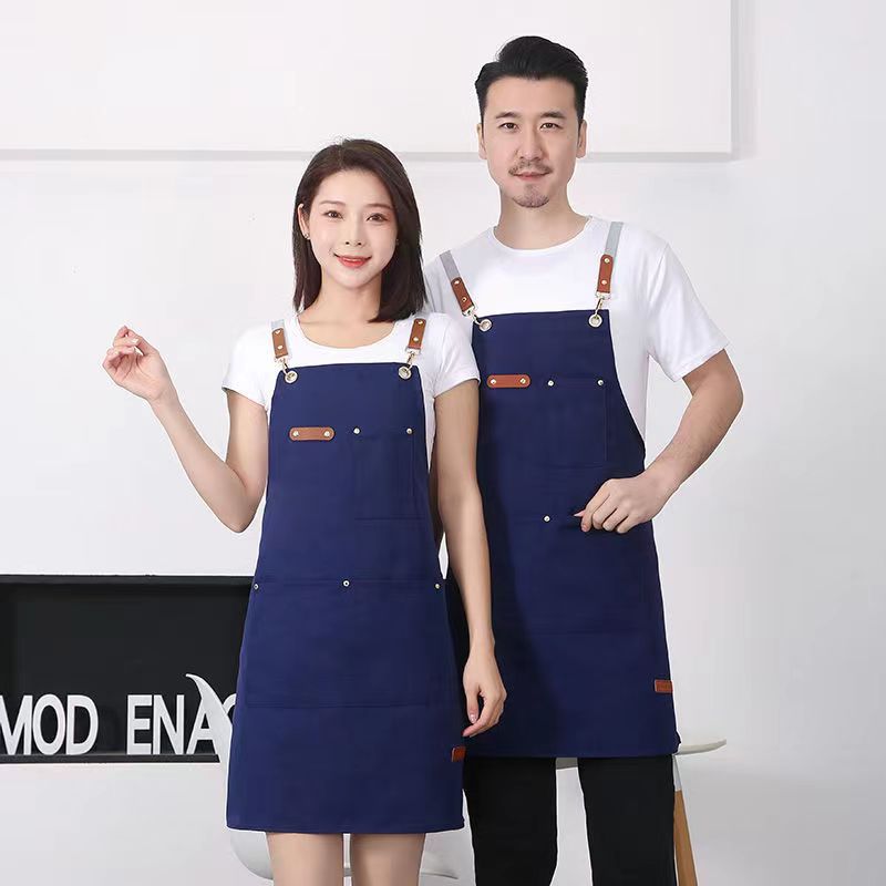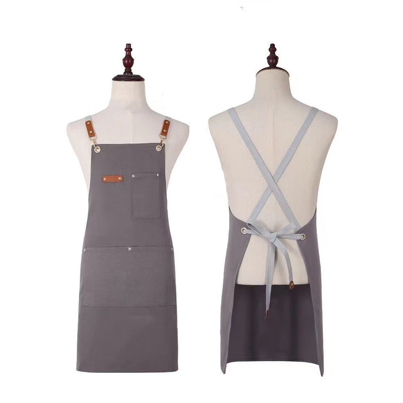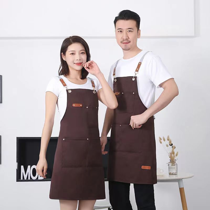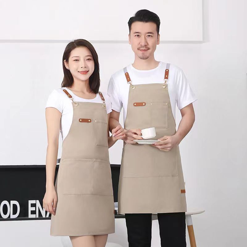 跨境厂家直销防水防污帆布围裙咖啡店厨房餐厅烘焙可印制logo围裙