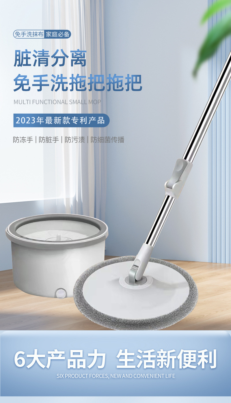 批发新款圆筒形旋转拖把免手洗家用塑料盘拖把套装拖把桶拖布0808