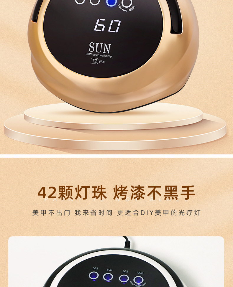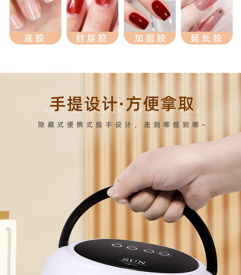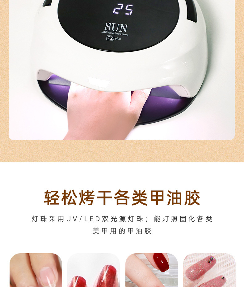 跨境新款T2红光美甲机光疗灯智能便携手提式大功率指甲哄干机烤灯