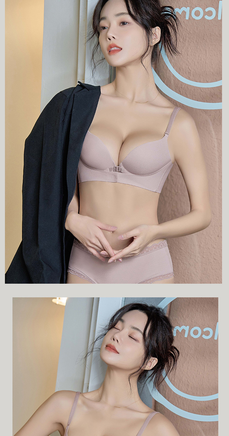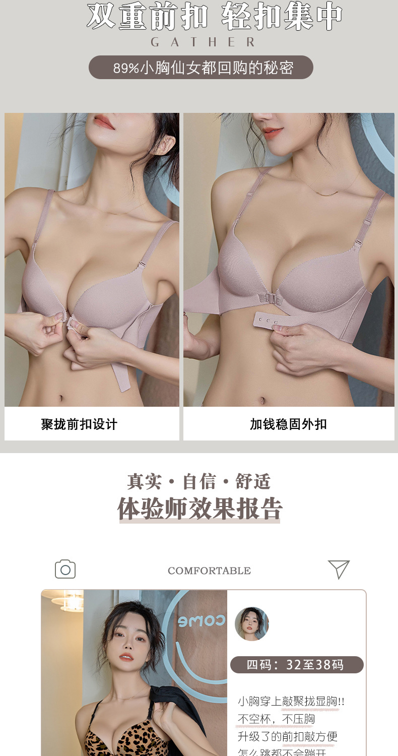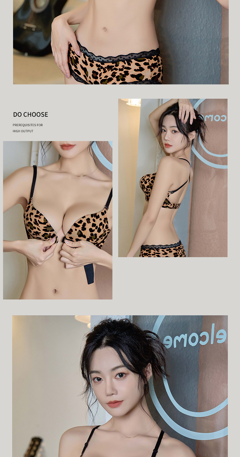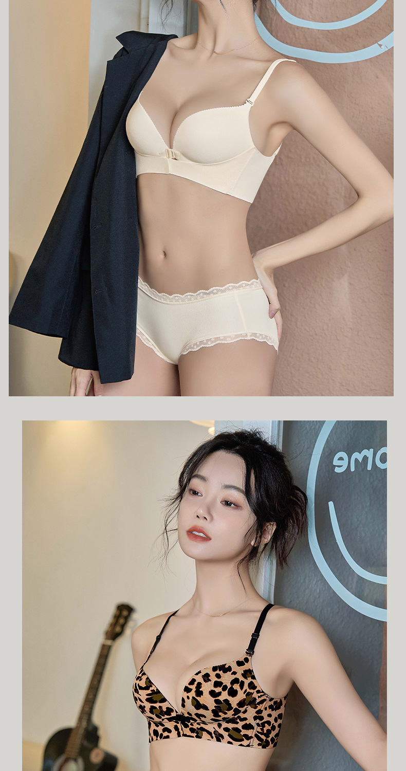 前扣小胸聚拢性感豹纹交叉美背无钢圈文胸显大时尚百搭无痕内衣女