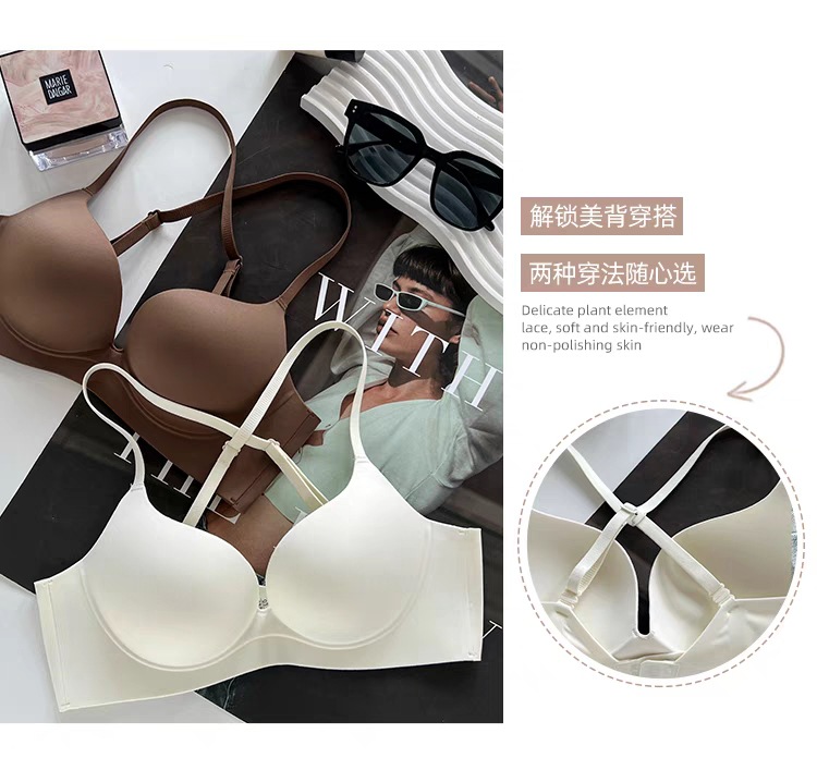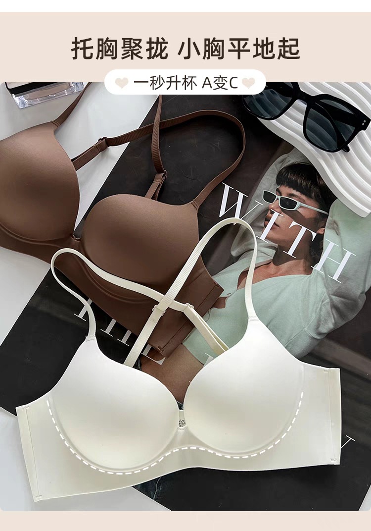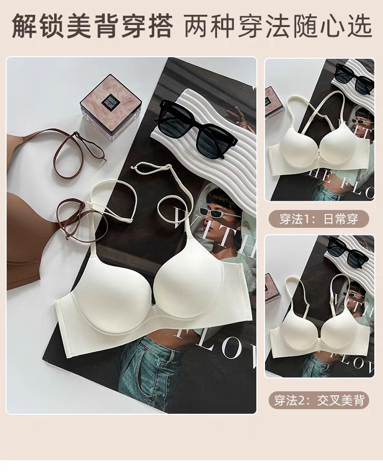 热销 无痕性感美背内衣女小胸聚拢显大无钢圈防下垂上托美背文胸