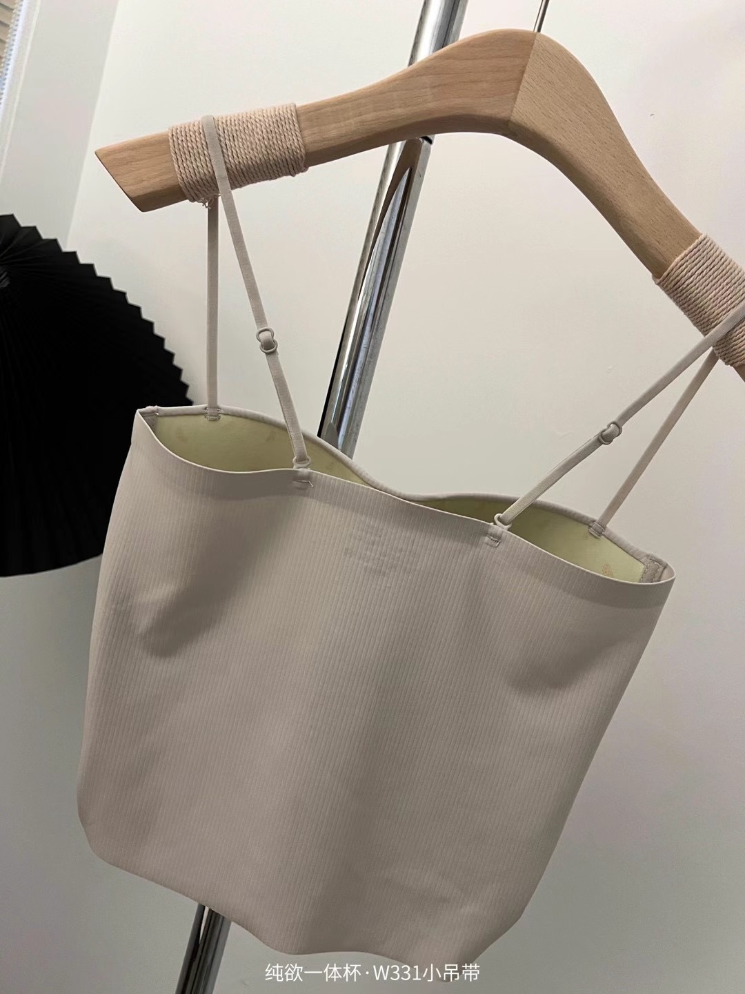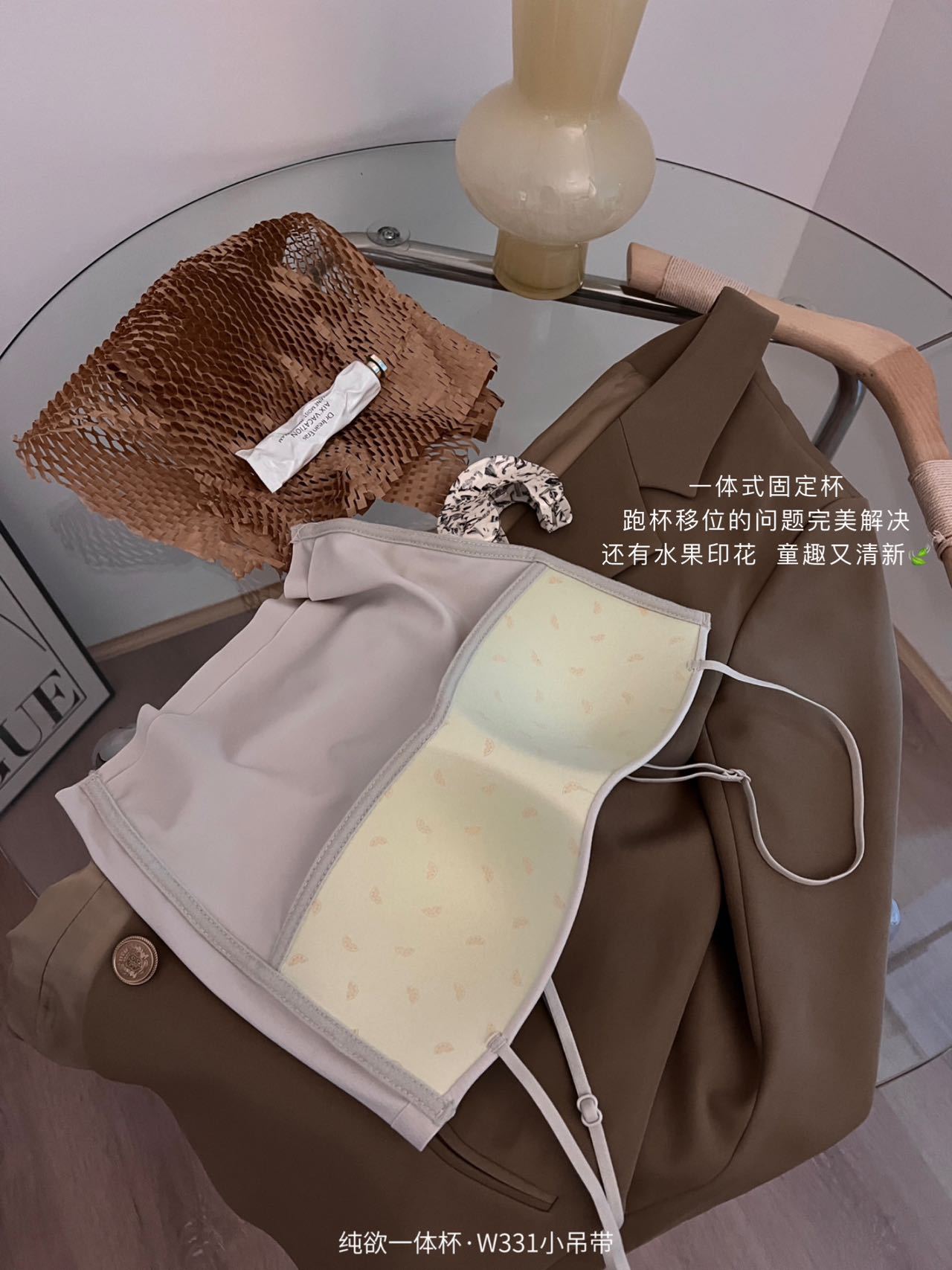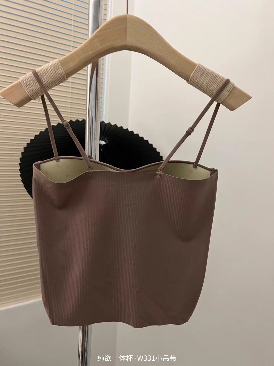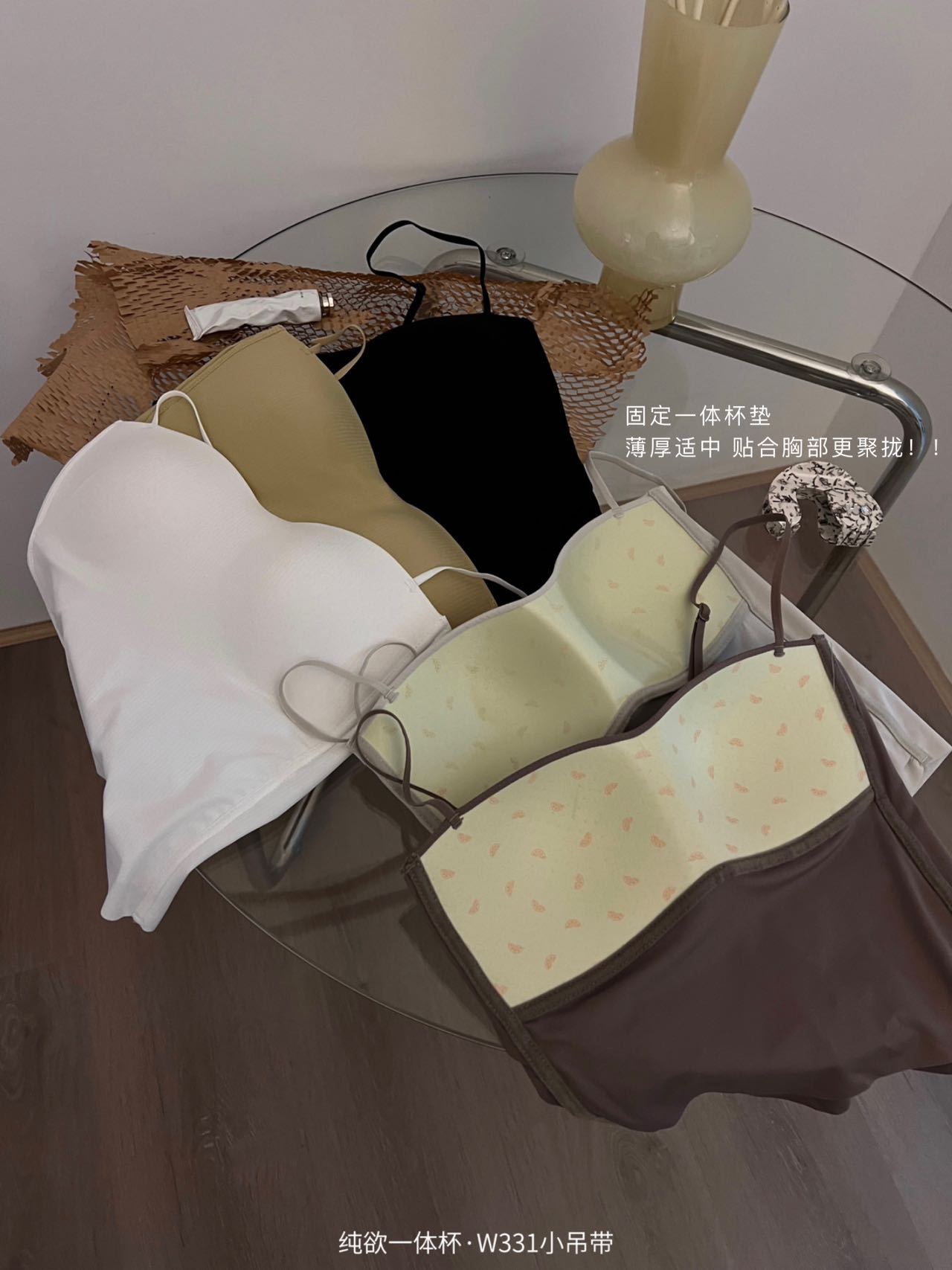 纯欲简约无痕内衣女一体杯吊带背心一片式固定立体杯抹胸春夏文胸