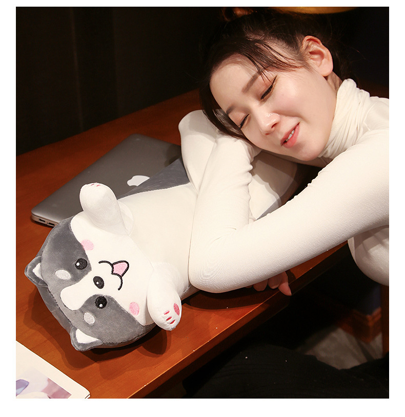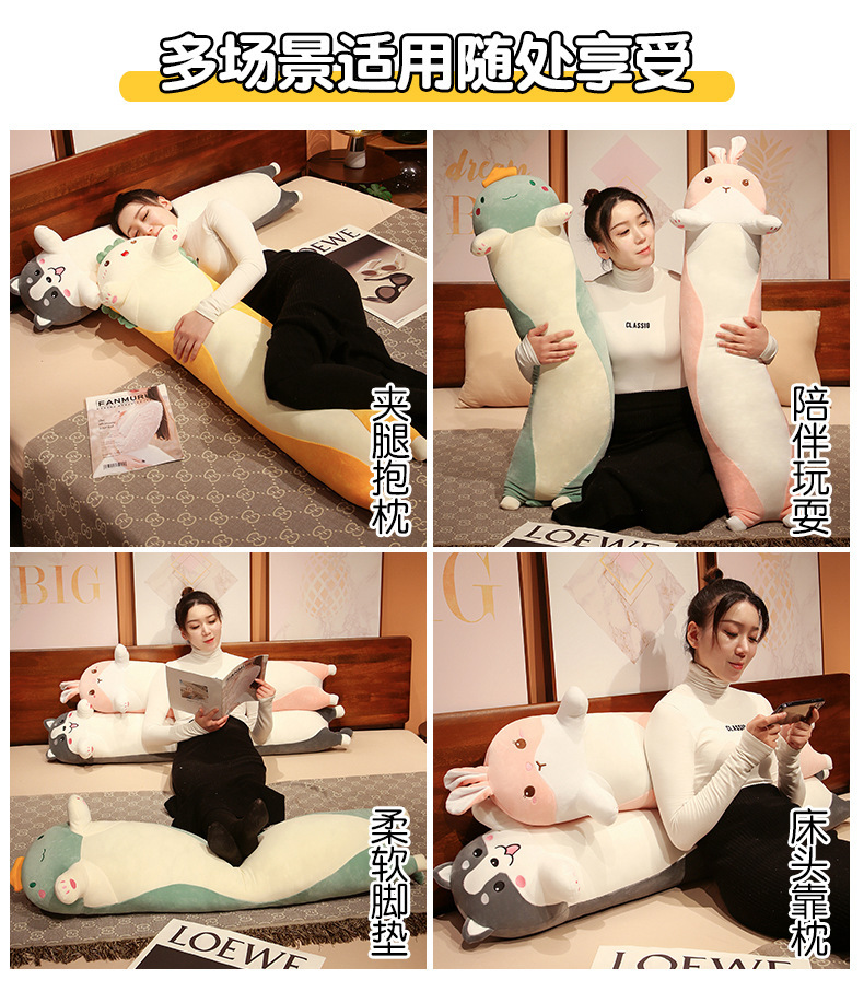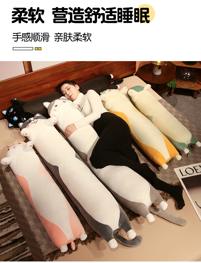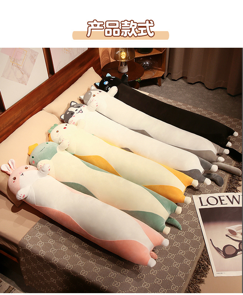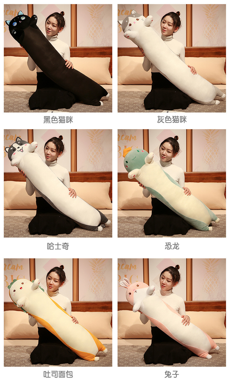 可爱长条黑猫哈士奇冰丝夹腿大抱枕床靠垫男女抱睡觉毛绒玩偶批发