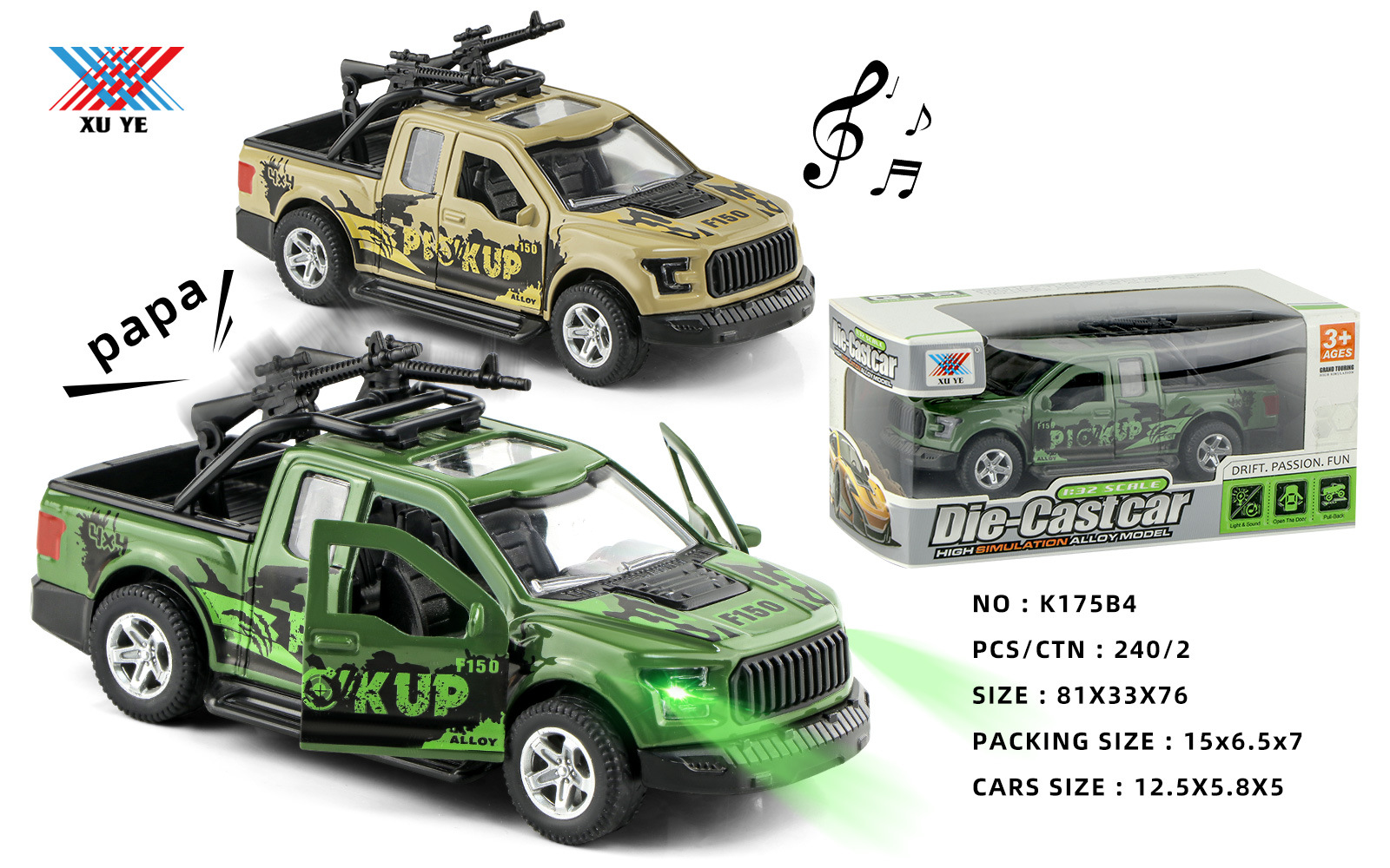 1:32合金军车合金工程车多开门回力灯光音乐合金玩具模型男孩送礼