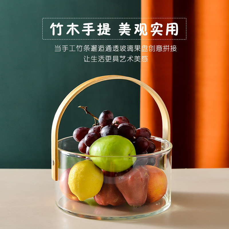 定制水果篮客厅家用零食桶果盘批发大沙拉碗手提网红透明水果提篮