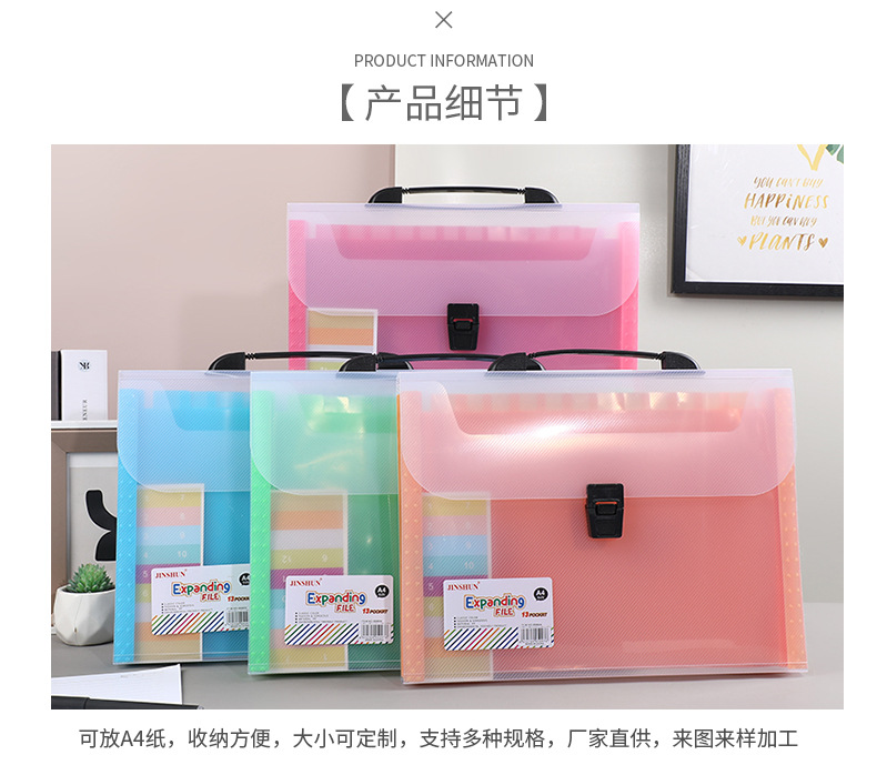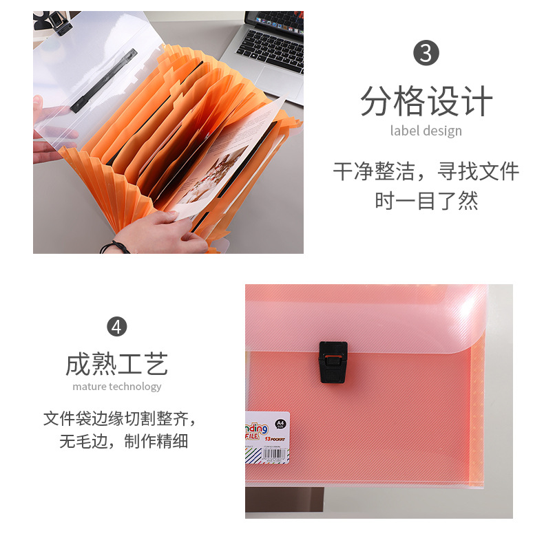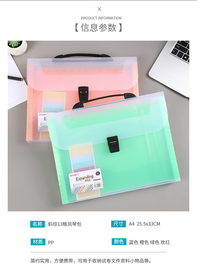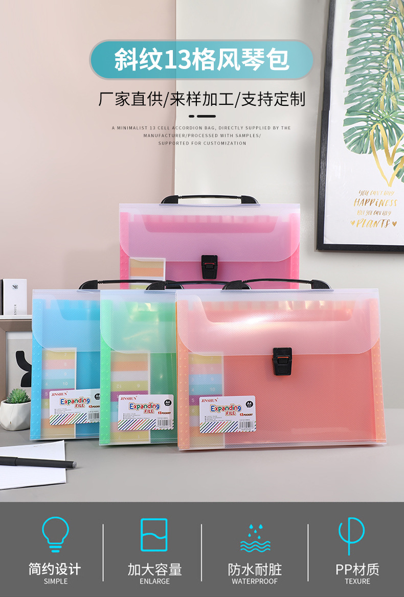 批发A4文件夹13格斜纹风琴包 学生试卷票据多层收纳袋商务文件袋