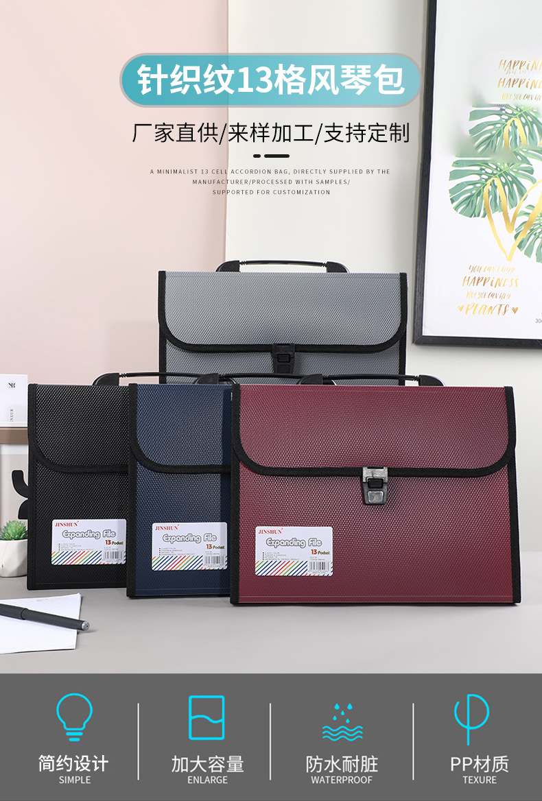 A4手提风琴包 13格针织纹商务办公文件夹学生试卷收纳多层文件袋