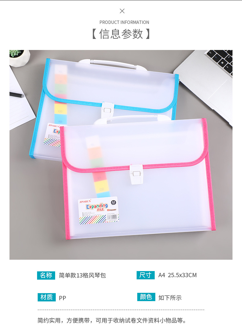 半透明手提13格风琴包多层文件收纳公文包学生试卷商务票据文件袋