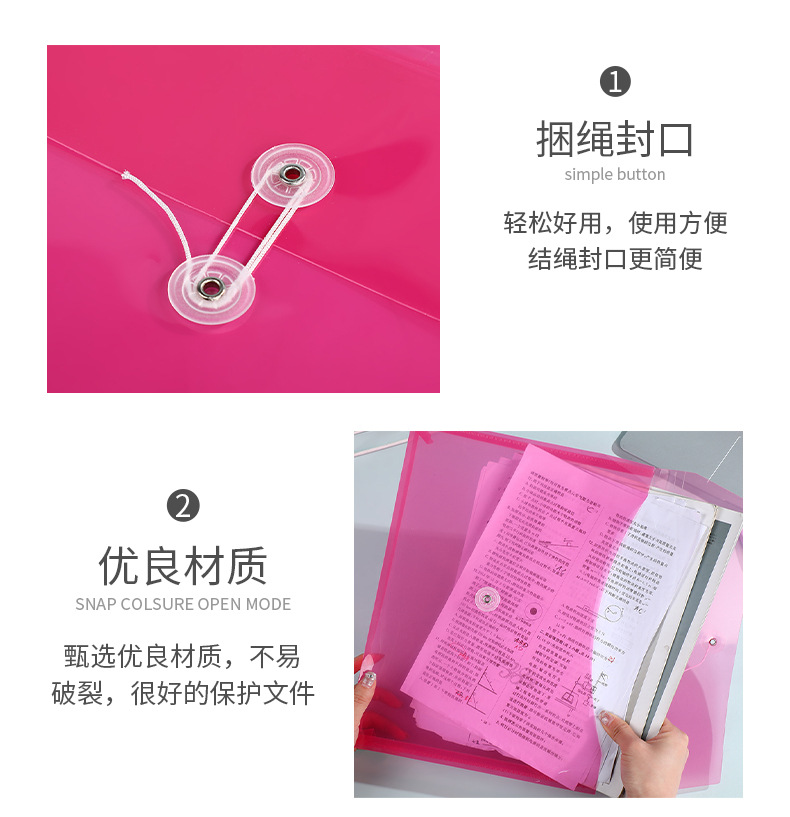 批发透明pp文件袋 立体捆绳资料袋学生试卷收纳袋办公文件档案袋